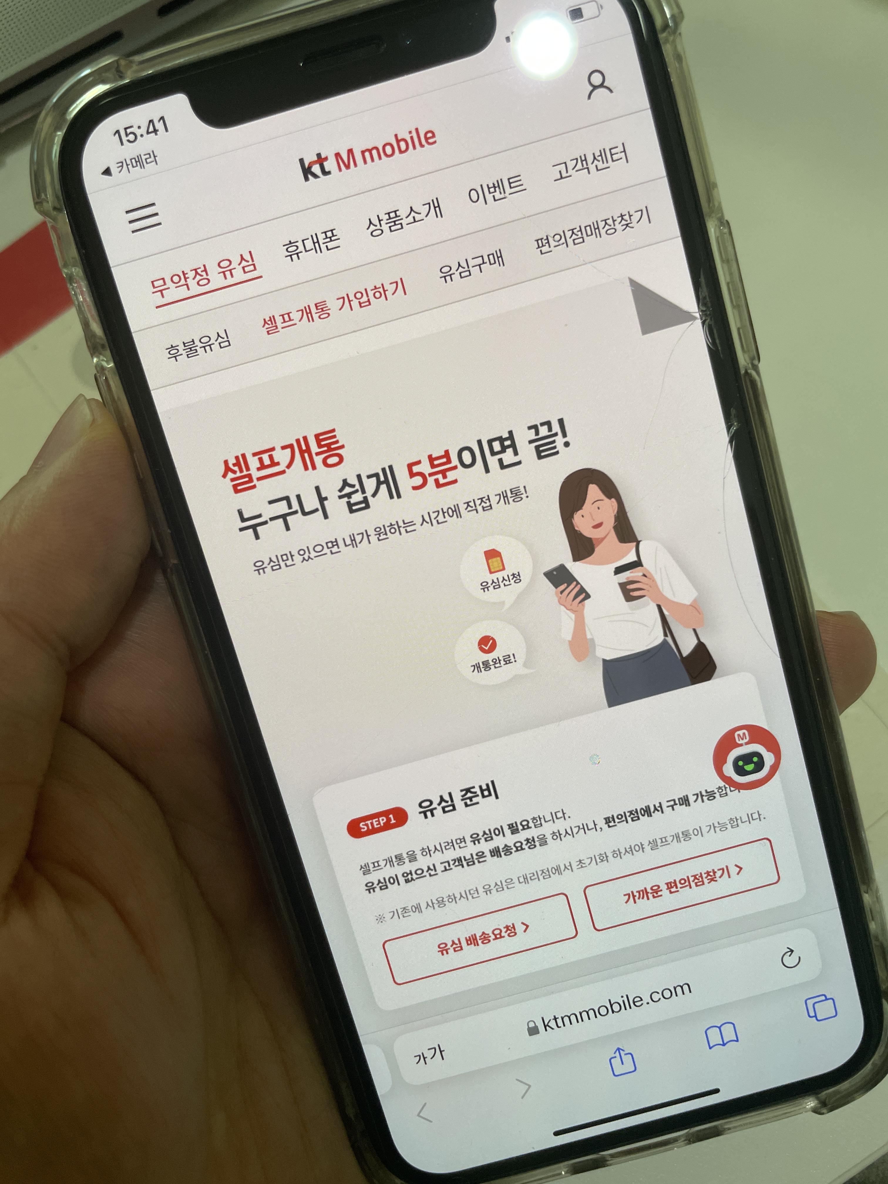 케이티엠 모바일 알뜰폰을 개통하기 위해서 홈페이지에 접속한다. <무약정 유심> 탭에서 <셀프 개통 가입하기> 탭을 눌러준다. 가이드라인이 홈페이지에 나와있기 때문에 그대로 따라서 해주기만 하면 된다.