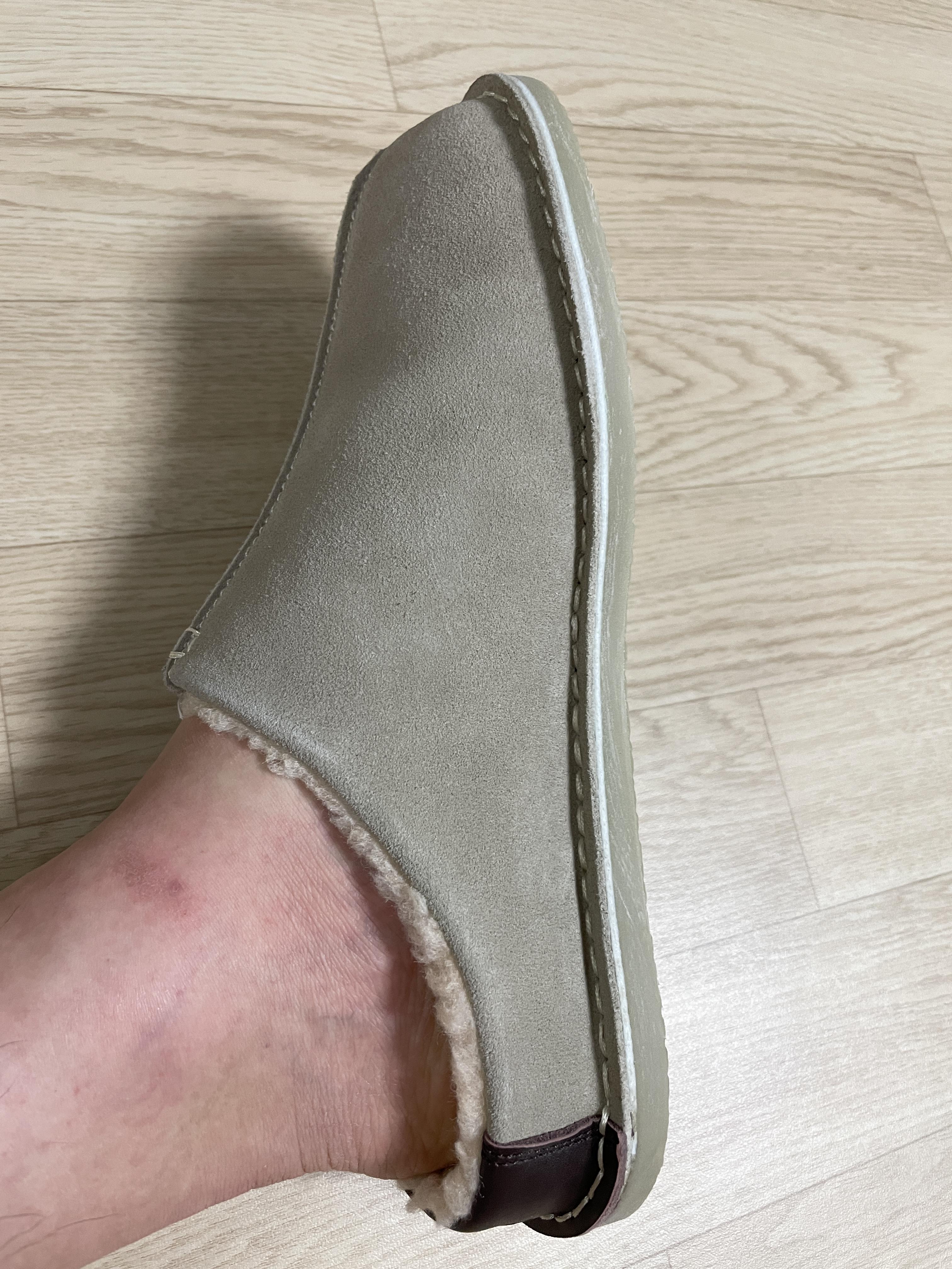 오해하지 않기 바란다. 85,000원이라는 정가가 저렴하다는 것이 아니다. 인터넷에 서치 해보면 5만 원대의 할인된 가격에 많은 쇼핑몰에서 판매하고 있다. 이 가격이 왜 저렴하냐고 물어본다면, 단적으로 내가 '크록스'에서 안에 털이 있는 신발을 얼마에 샀는지 들어보면 납득이 갈 것이다. 크록스에서 안에 털이 있는 겨울용 신발을 6만 5천 원을 주고 구매했다. 그런데 이 신발이 양모에 가죽이라면 당연히 이런 이야기를 하지 않았을 것이다. 천연가죽에 양모가 들어간 신발을 5만 원대에 구매한다는 것만으로도 충분히 메리트가 있는 제품이 아닐까 싶다.