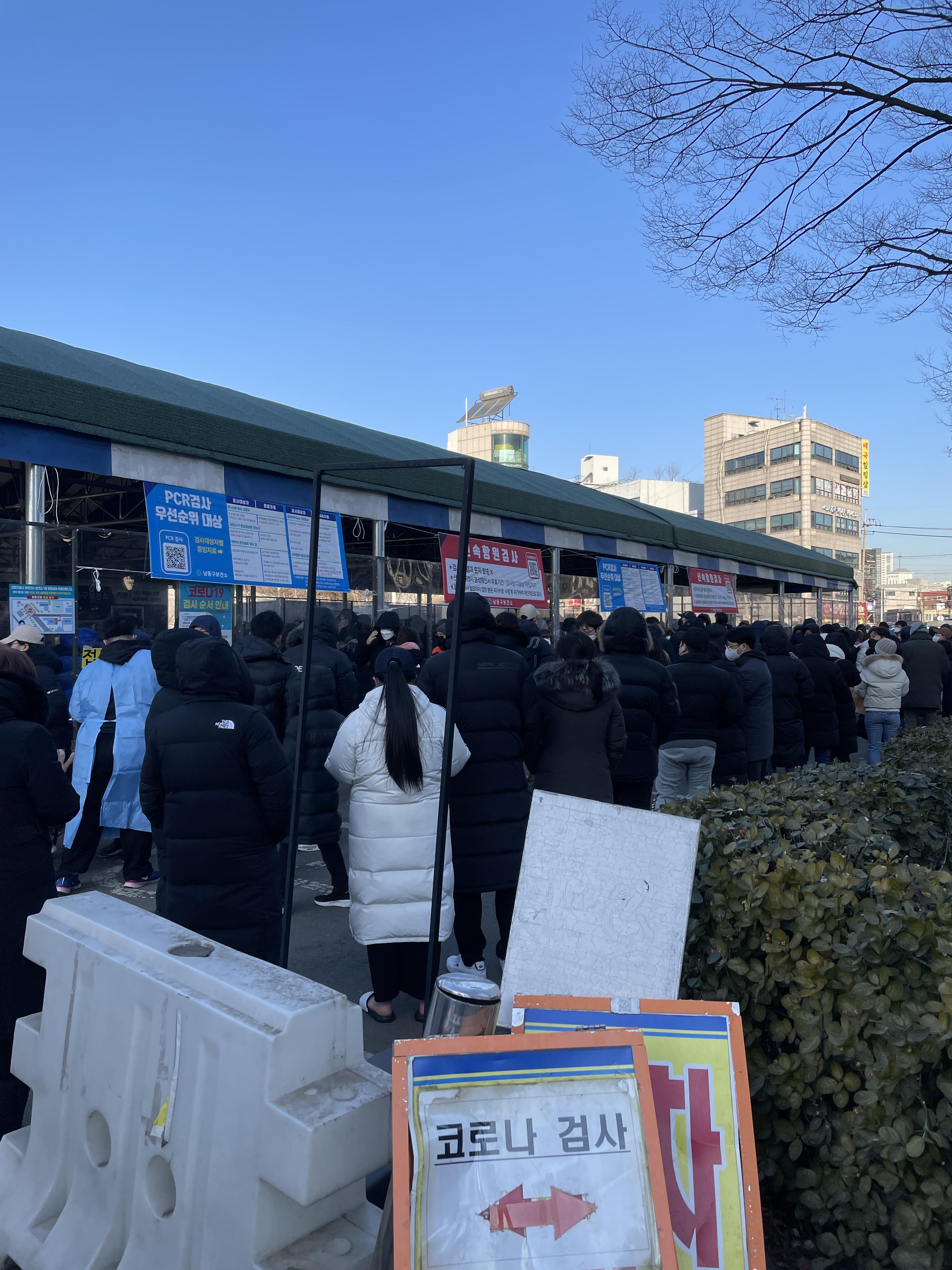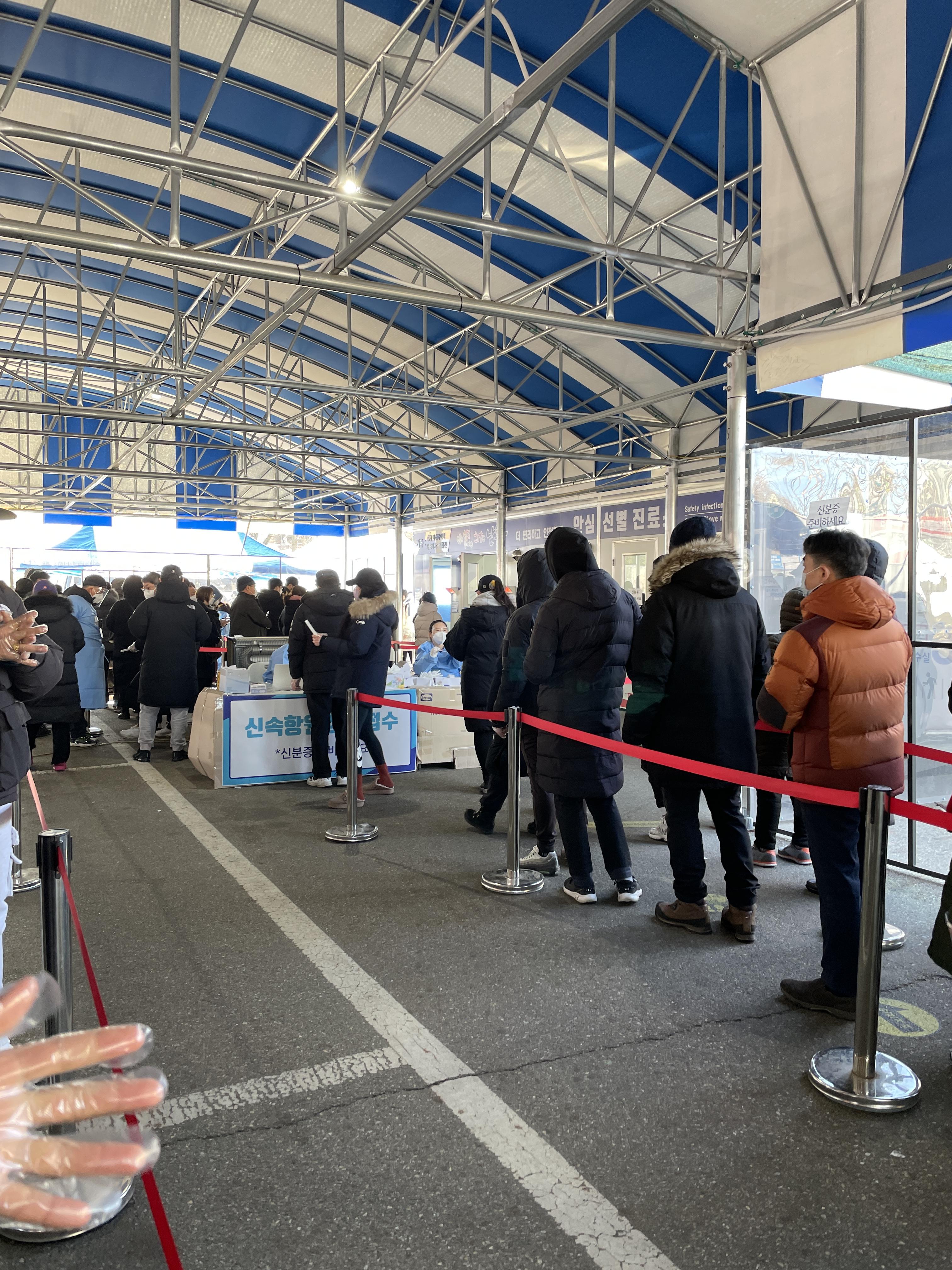 우리는 일요일날 오전 9시부터 검사를 시작한다는 말을 듣고 8시 40분쯤 도착했는데 이렇게 사람이 많을 줄 몰랐다. 아마 방역 패스를 시행하다 보니 많은 사람들이 신속항원검사를 마치고 음성 확인서를 들고 외출을 하려는 것 같기도 했고, 다음날 회사에 해당 서류를 제출해야 하기 때문에 어쩔 수 없이 받는 사람들도 있었다.