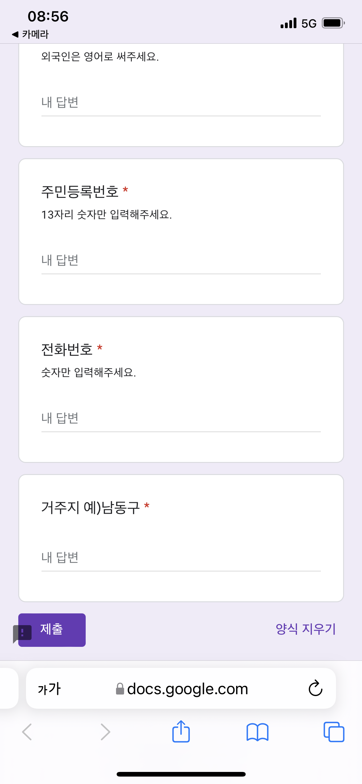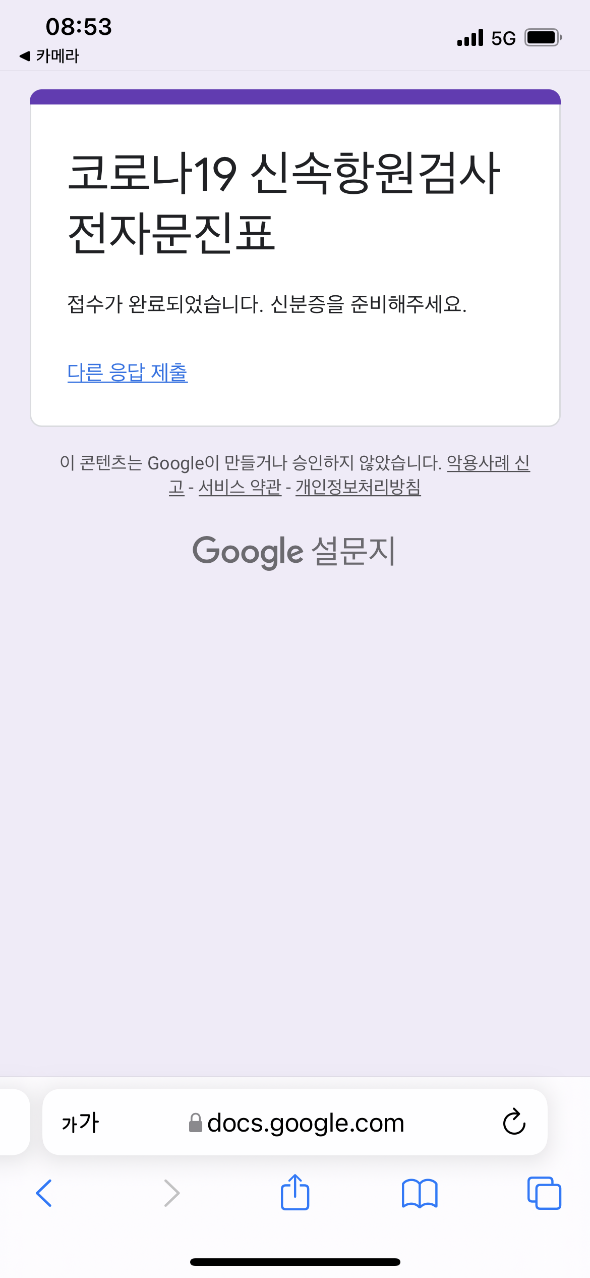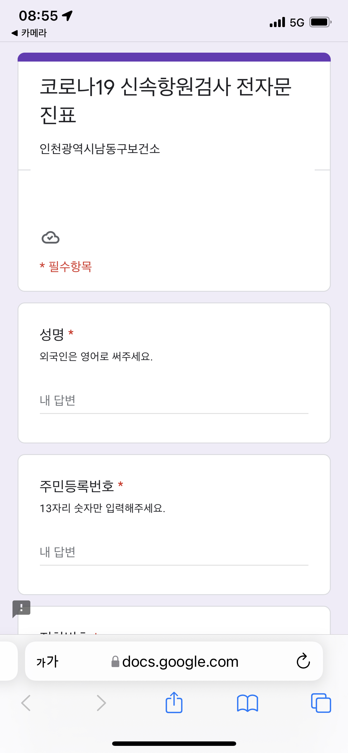 3. 신속항원검사 전 해야 하는 '전자문진표'를 작성한다.