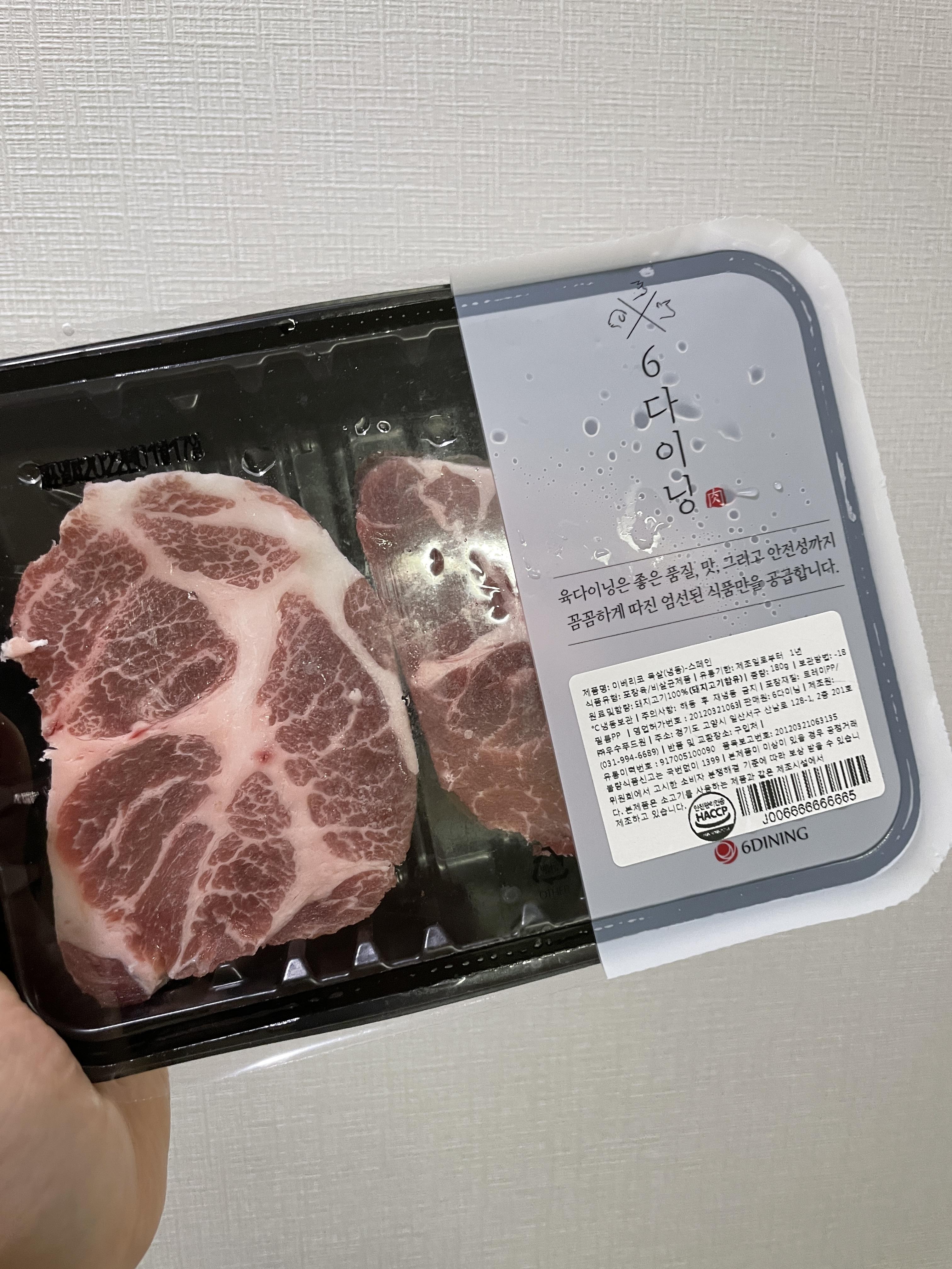6 다이닝의 인기 3종은 냉동 이베리코 고기다. 그러다 보니 약간의 해동 시간이 필요한데, 우리는 냉동으로 잘 보관해두었다가 먹기로 한 날 아침에 냉장고에서 냉장해동 후 1시간 정도 상온에 꺼내 두었더니 먹기 좋게 녹아서 바로 구워 먹었다.