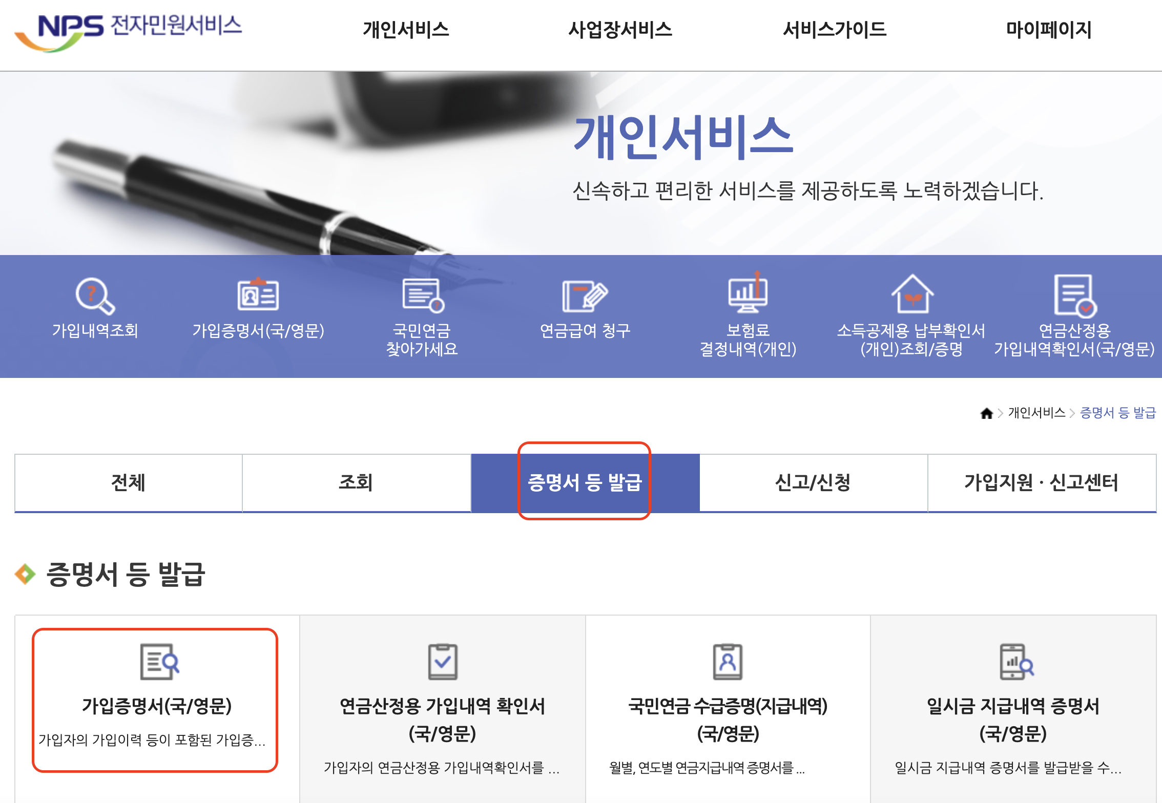 국민연금 가입 증명서 발급받기