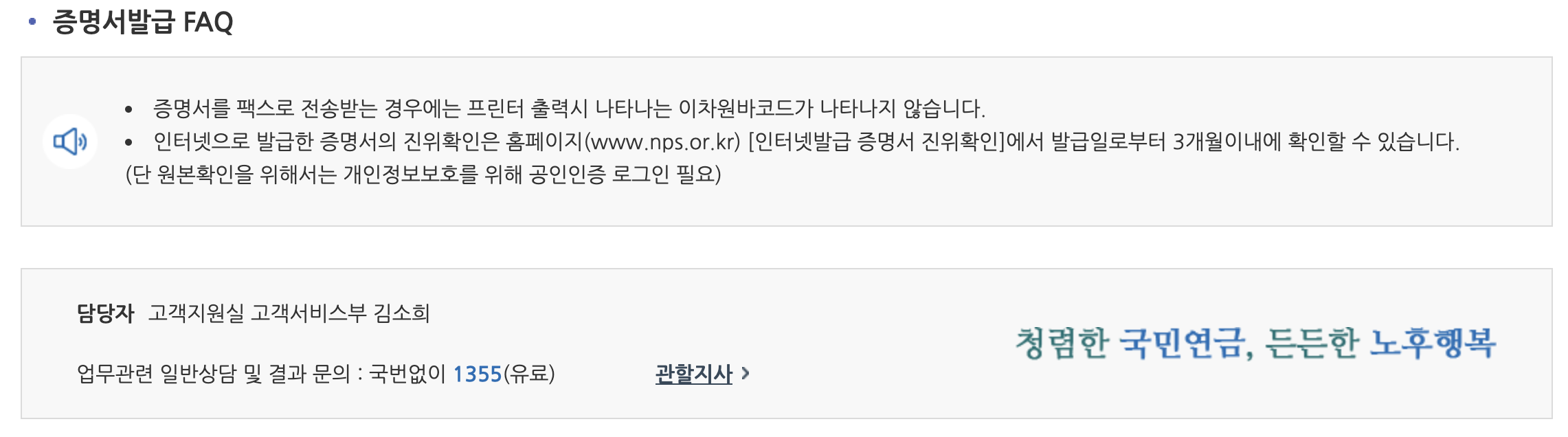 만약 가입증명서 발급과 관련해서 궁금한 사항이 있다면 국민연금 콜센터 국번 없이 1355에 전화하면 누구나 쉽게 문의를 할 수 있을 것이다.