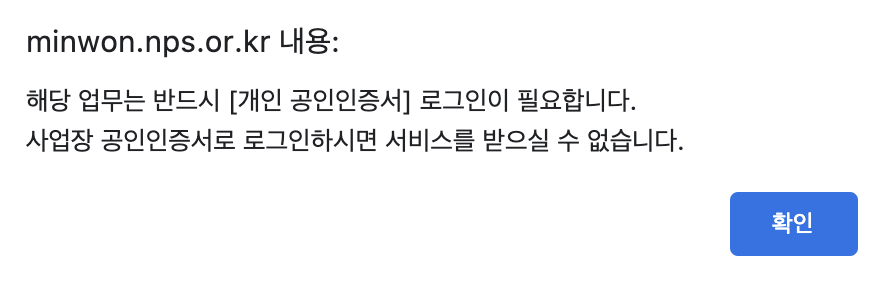 해당 서비스를 통해서 증명서 발급을 받기 위해서는 개인인증을 반드시 거쳐야 한다. 아마 증명서 발급을 위해 위의 메뉴를 누르면 아래와 같은 메시지가 보이게 될 것이다.