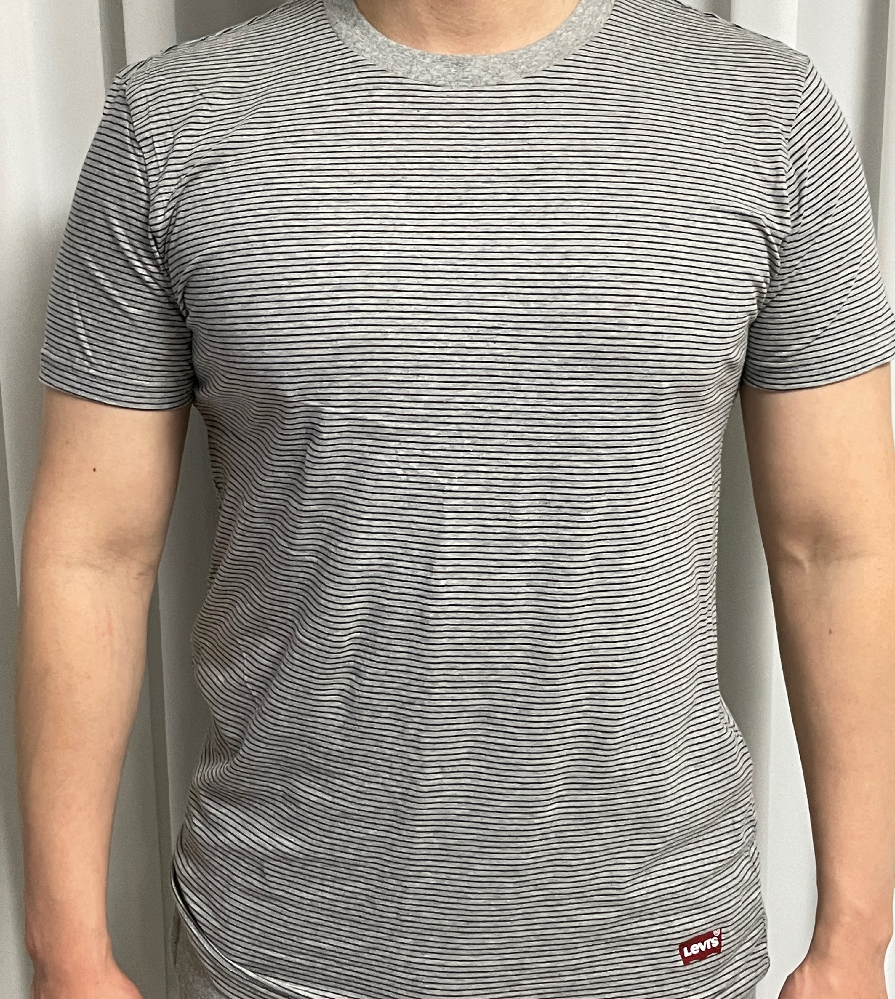 리바이스 반팔은 폴로처럼 짱짱하지는 않지만, 그것과 다르게 리바이스만의 매력이 있었다. 팔도 완전히 머슬핏은 아니지만 핏 하게 맞아서 몸을 더 부각해 주는 역할을 했고, 허리도 얇게 빠져있어서 나처럼 등이 넓지만 허리가 얇은 체형에게도 입었을 때 꽤 괜찮은 핏을 보여주는 옷이었다. 다만 소재가 얇은 소재다 보니 살이 많이 찐 사람이 입었을 때는 부담스러운 핏(?)이 나올 수 있으니 주의하기를 바란다. 이너로 입을 반팔티의 용도라면 구매는 적극 찬성하니 꼭 하나 구매해서 입어보기 바란다.