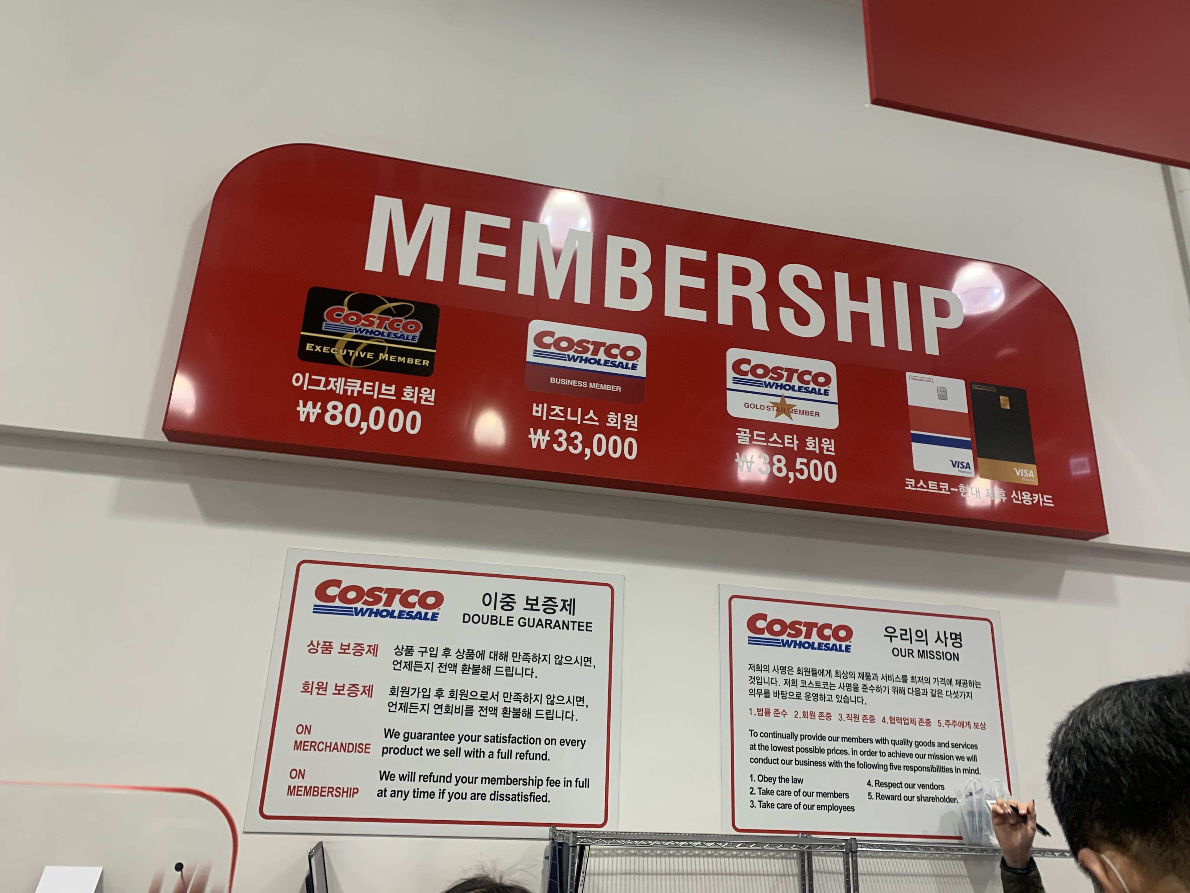 코스트코는 총 3개의 멤버십이 존재한다. 가장 높은 등급의 이그제큐티브 회원은 연회비 8만 원을 지불하면 가능하고, 개인사업을 하고 있는 사람의 경우는 33,000원으로 가장 저렴한 가격에 이용이 가능하다. 하지만 사업자가 있어야 하고 아마 코스트코 측에서도 개인사업자를 통해서 물량이 워낙 많이 판매되다 보니 이런 가격을 책정한 것이 아닌가 생각한다. 나와 같은 코스트코 일반 회원의 경우는 38,500원이라는 가격을 지불하면 회원권을 발급받을 수 있다. 또한 코스트코-현대카드라고 하는 카드가 있는데, 저 카드를 발급받으면 해당 신용카드 연회비에 코스트코 연회비가 포함되어 있는 건지..(?)는 사실 잘 모르겠지만, 멤버십 중 하나로 적혀있는 걸 보니 가능한 것 같기도 하다. 만약 해당 카드를 사용하는 사람이 있다면, 댓글로 알려주기 바란다.