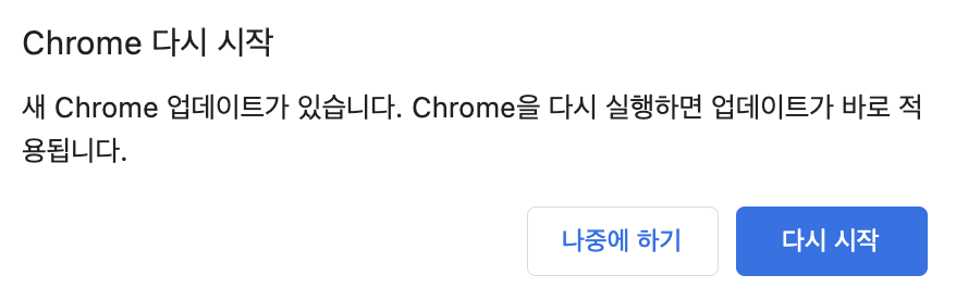 2. 노출된 메뉴 중 <다시 실행하여 Chrome 업데이트> 클릭