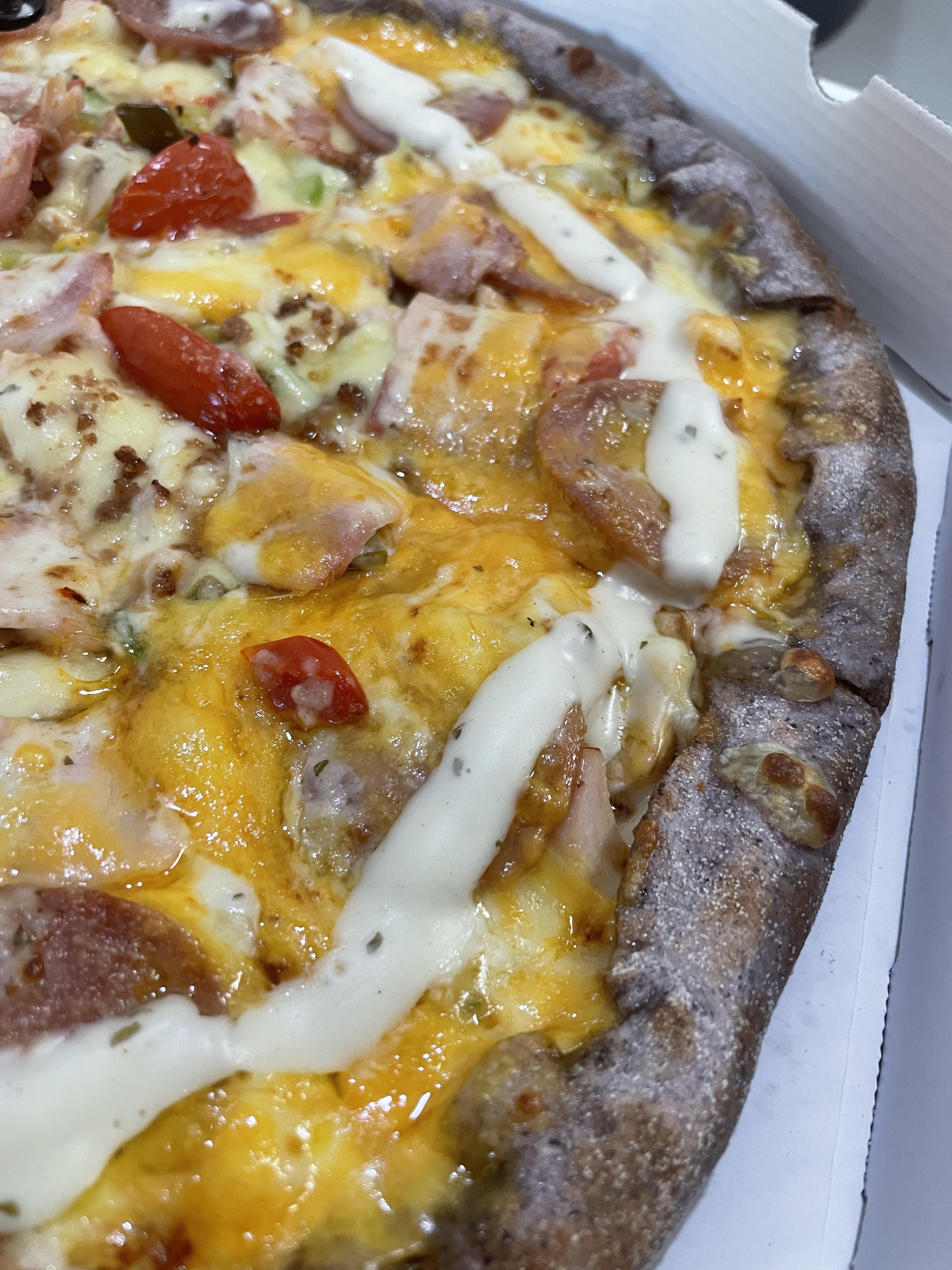 사실 솔직하게 후기를 작성하기로 했기 때문에 개인적인 맛에 대한 후기를 써보려고 한다. 사실 내 입맛에는 웃음꽃피자가 맞지 않았다. 재료나 치즈 등 엄청나게 많이 들어있는데도 불구하고 일단 베이스가 '랜치 소스'여서 랜치 소스의 상큼을 넘어선 약간은 시큼함이 나에게는 맞지 않았고, 그라나파다노 치즈도 엄청나게 고급 치즈임에도 불구하고 저렴한 내 입맛과는 어울리지 않았다.