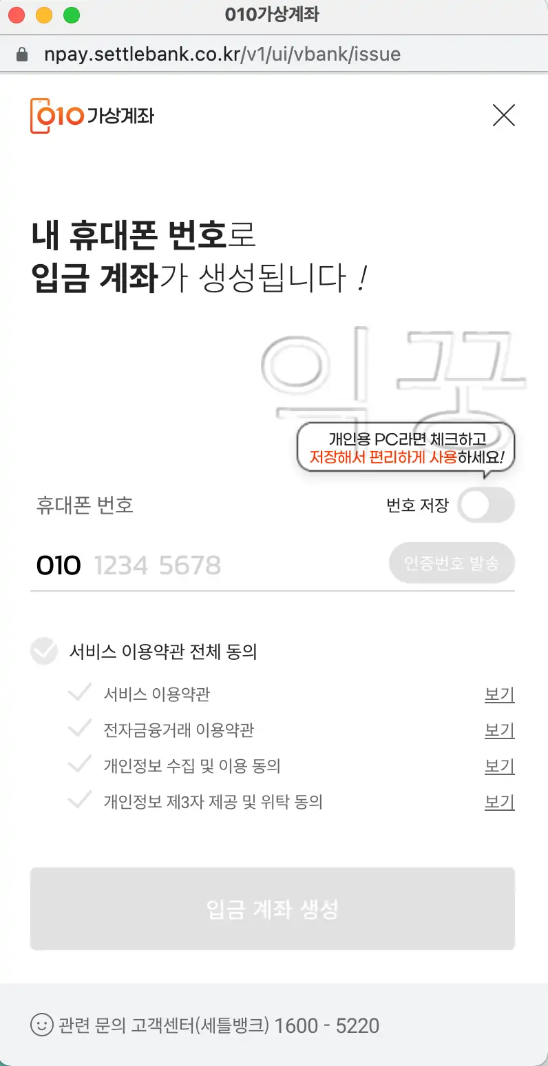 반드시 <주문하기>버튼을 눌러서 가상계좌 생성을 마무리해야 입금이 가능해진다.