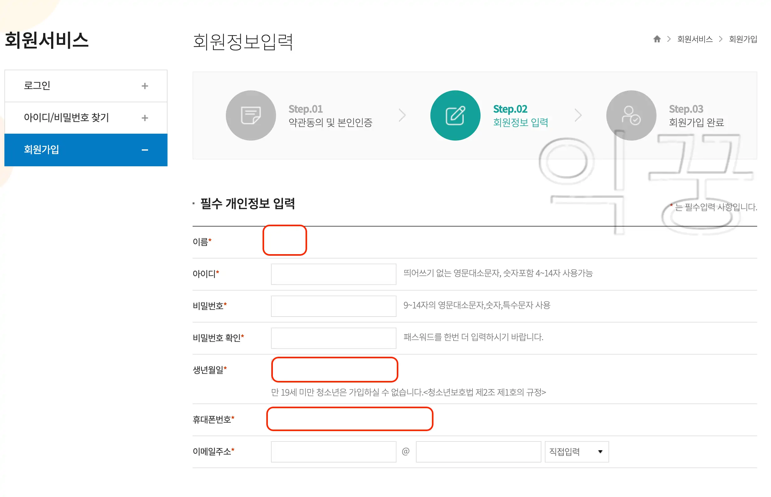 회원가입을 할 때는 본인인증을 해야 한다. 나의 경우는 PASS 앱을 통해서 본인인증을 마치고 회원가입을 했고, 비밀번호와 이메일 주소까지 작성을 하면 할 일은 완료된다.