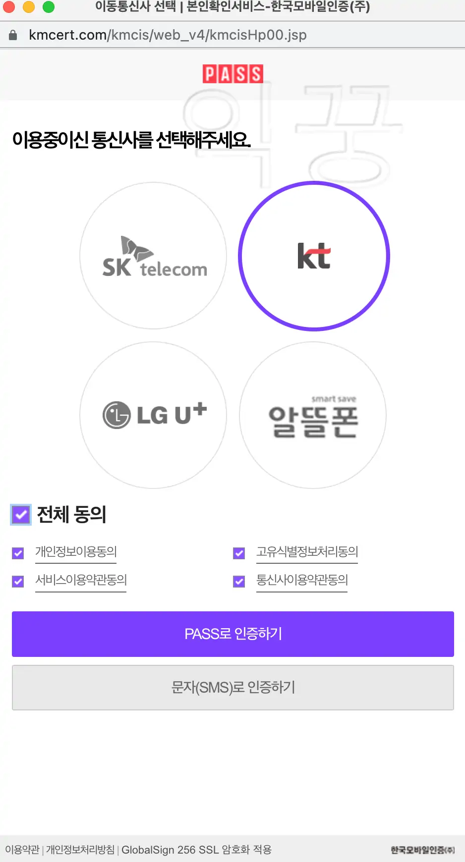 KT 본인인증 절차 진행