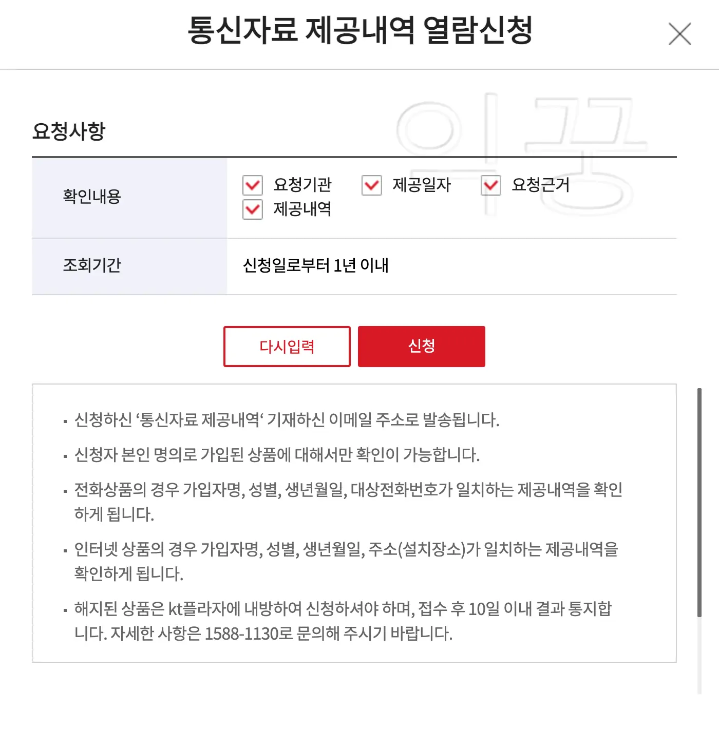 KT 통신자료 제공 내역 조회 방법