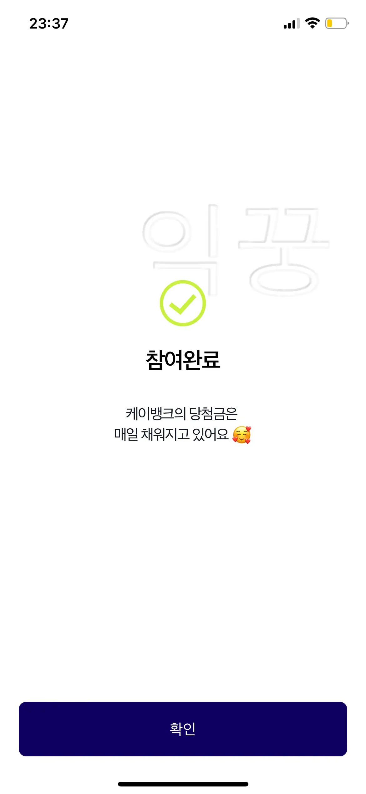 이벤트에 참여하고 나면 위의 사진처럼 '참여 완료'라는 메시지가 나오게 된다. 그리고 확인 버튼을 누르면 내 행운 상자에서 당첨금이 얼마인지 나오는데 여기서 선택지가 두 가지로 나뉜다.