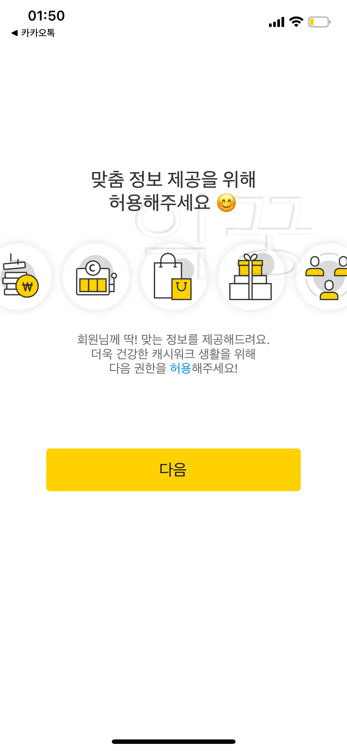 위의 다섯 가지 항목에 대해 접근권한을 주고 나면 캐시워크를 이용할 준비가 모두 끝나게 된다.
