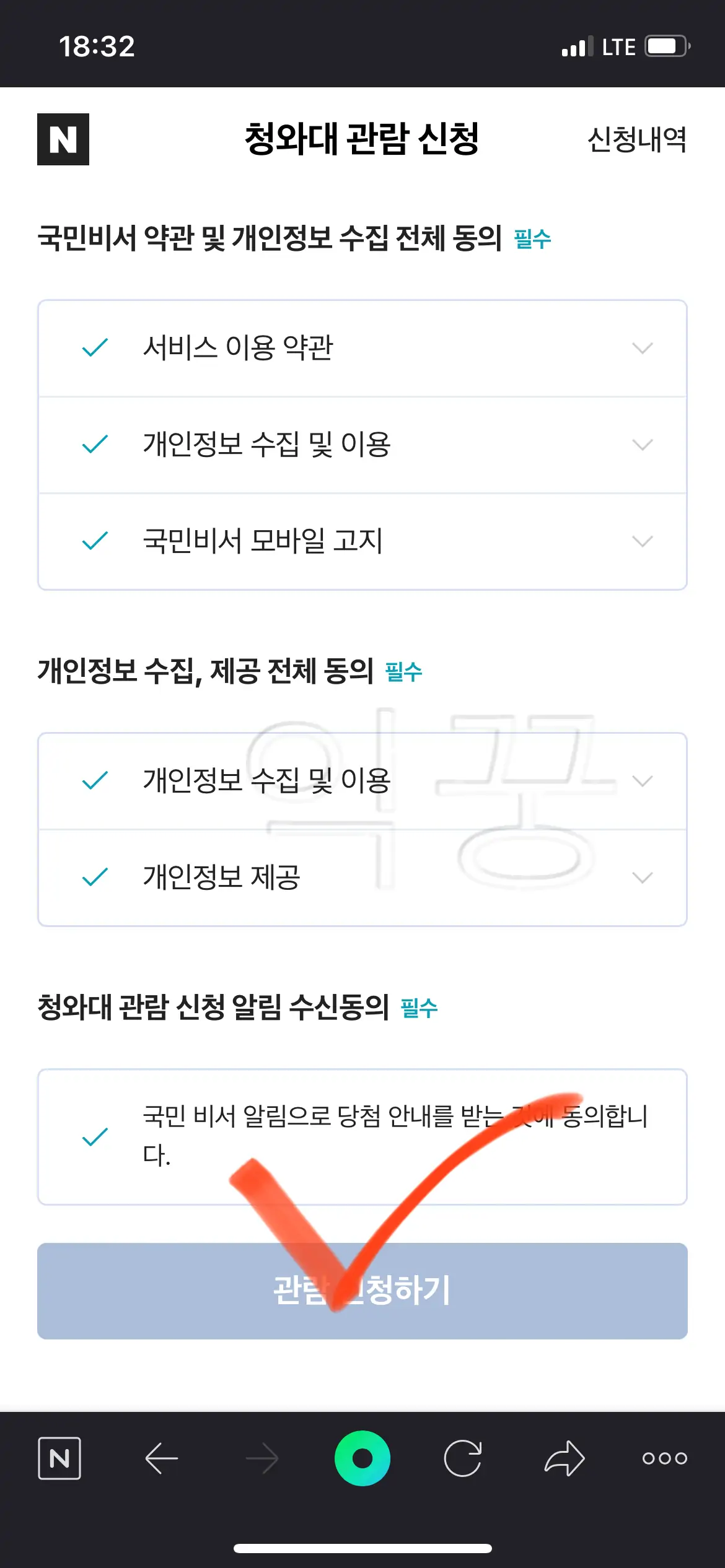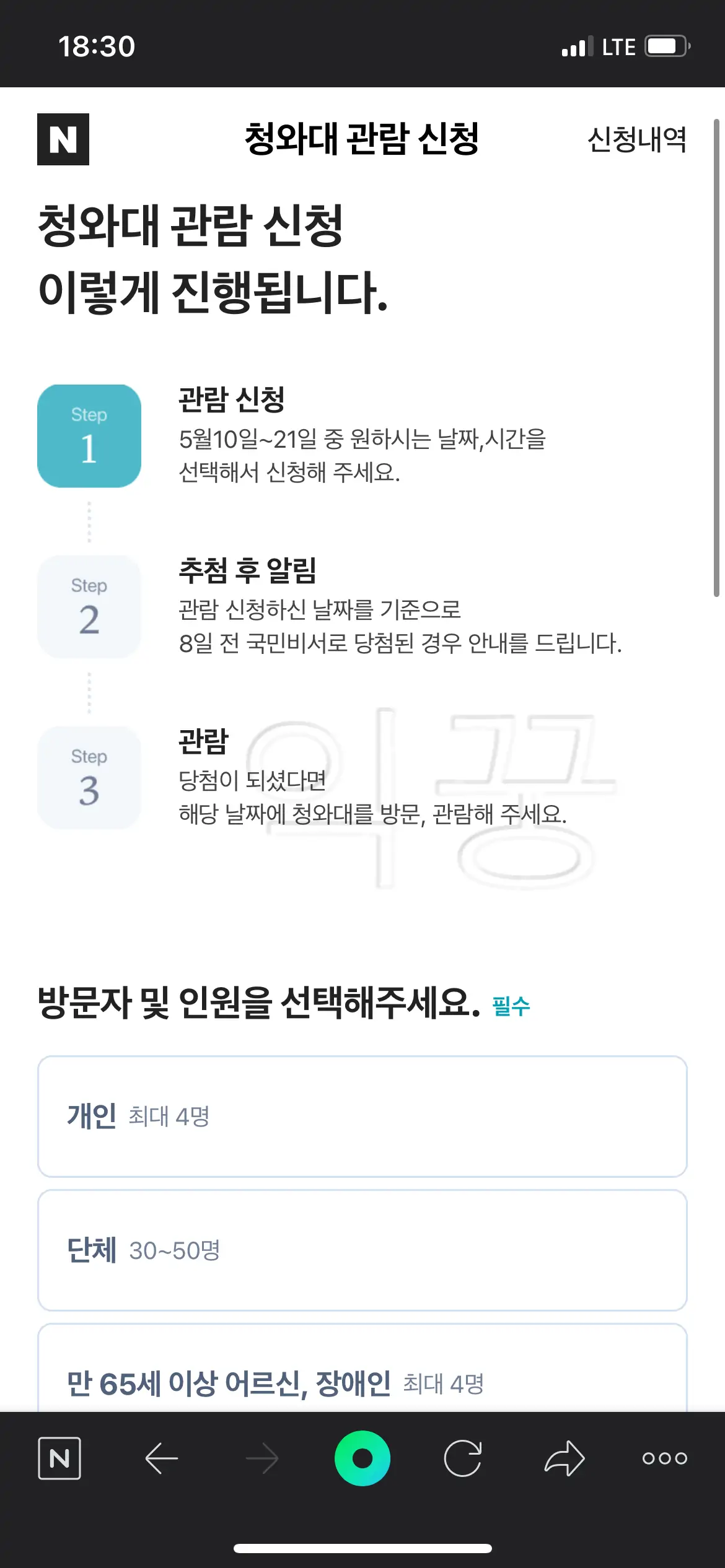 네이버 앱에서 청와대 관람 신청 예약하기