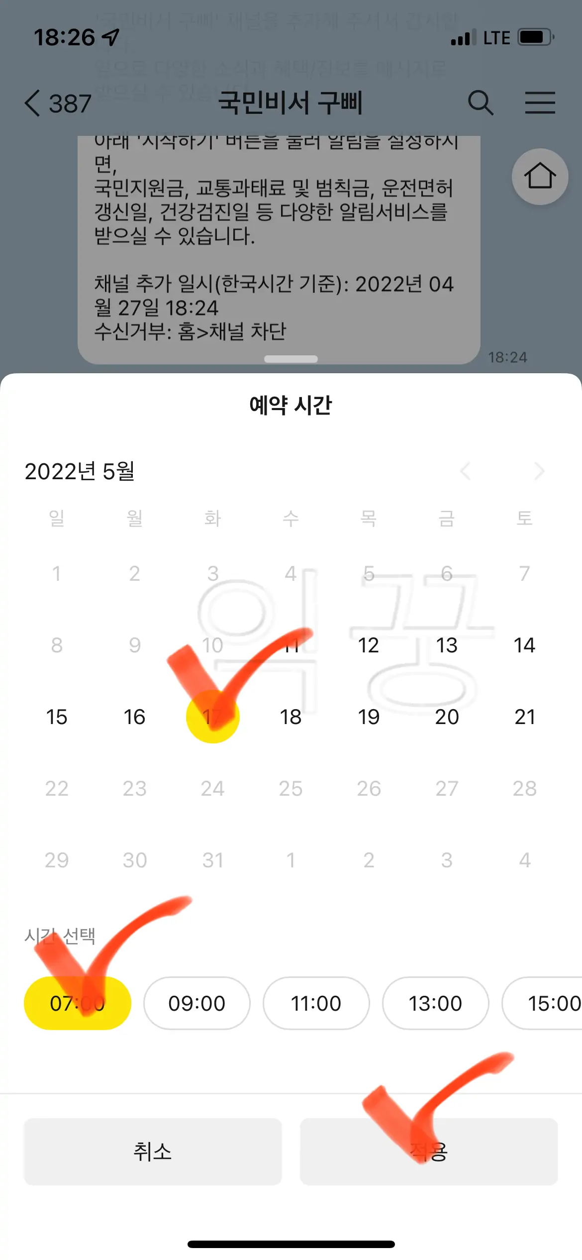 내 경우는 5월 10일 방문이 어려워 다른 날자를 고르기 위해 아래 메뉴를 선택했다.