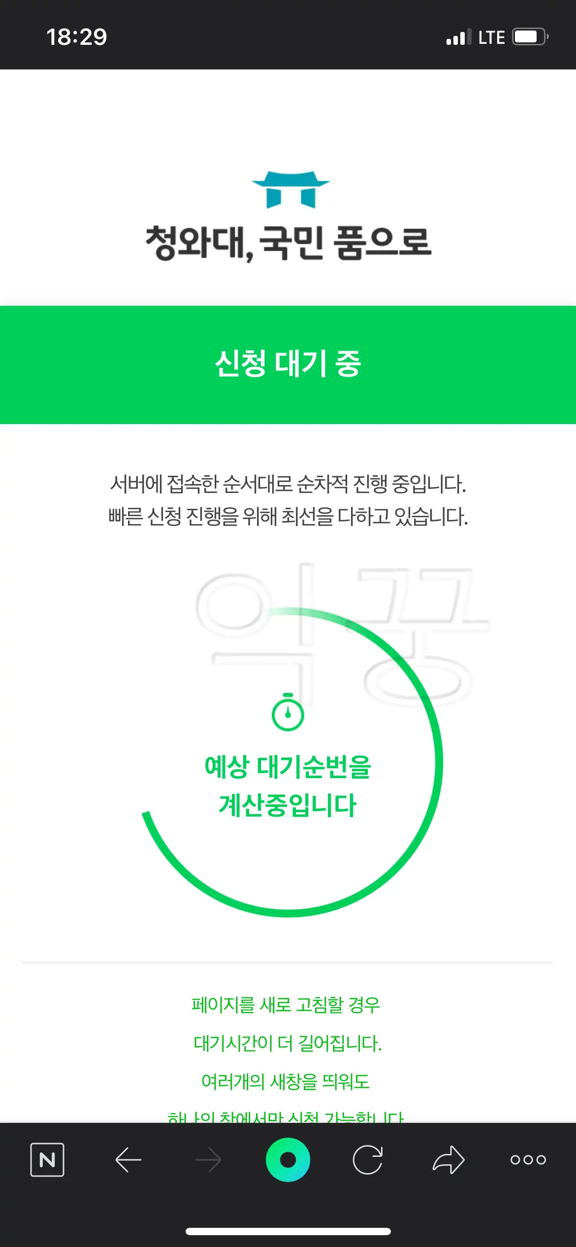 📌주의사항은 예약 대기화면에서 '새로고침'을 하면 대기 순번이 더 뒤로 밀릴 수 있으니 차분히 기다려야 한다는 것이다.