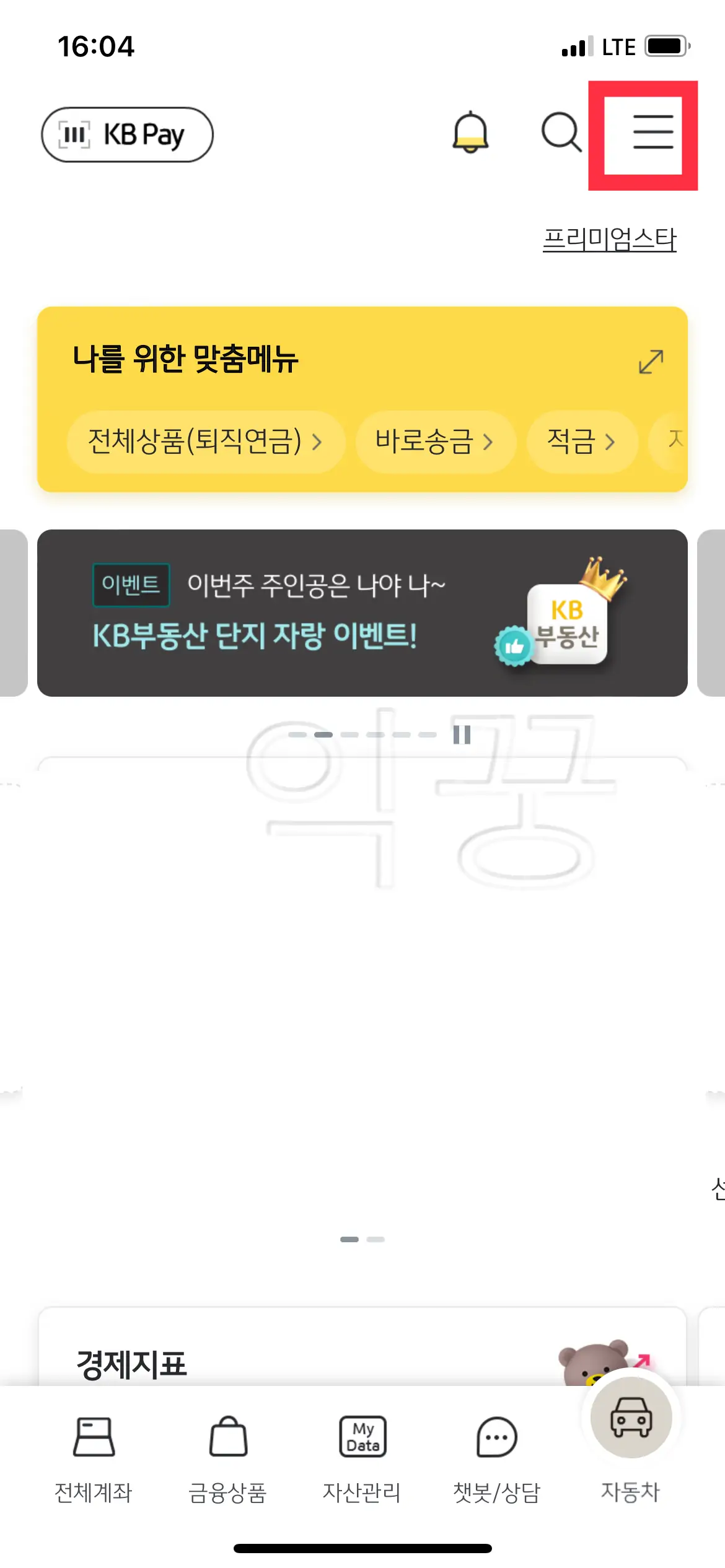<KB스타뱅킹> 앱을 켜고 우측 상단의 메뉴를 누르면 여러 메뉴 중에서 <외환> 카테고리를 눌러준다.