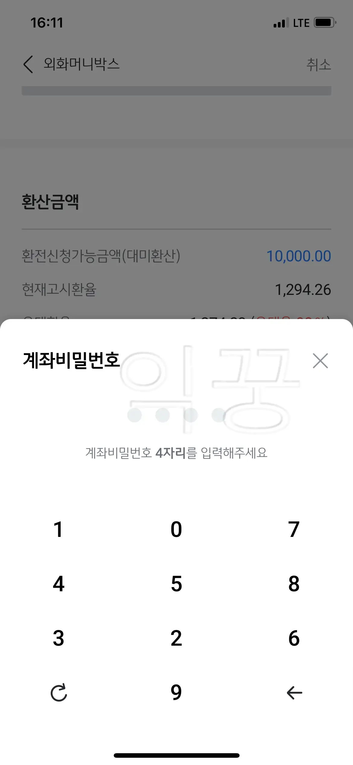 4. 환전금액 확인 후 비밀번호 입력