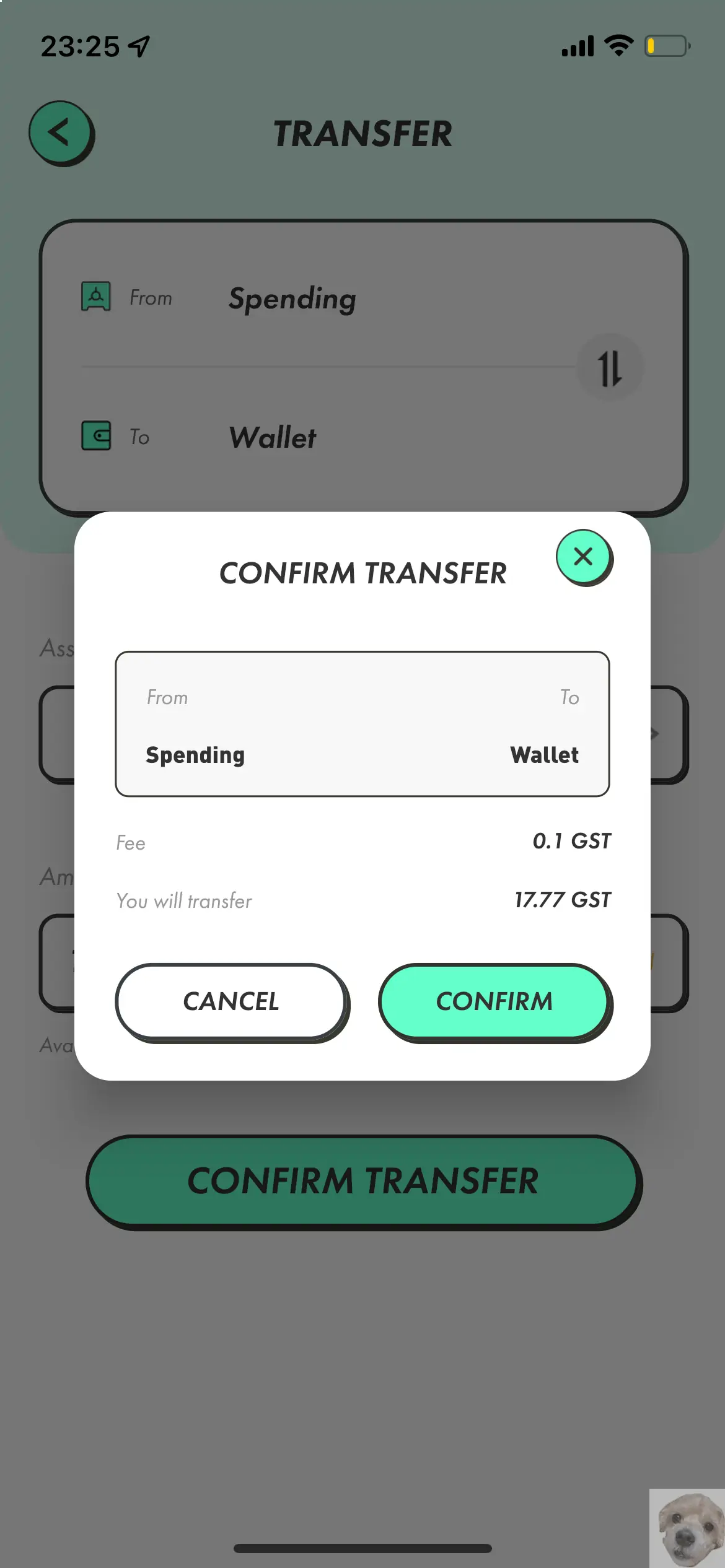 나처럼 GST 전량을 한 번에 Wallet으로 보내지 말고 만약의 사태를 대비해서 0.2 GST 정도는 남겨두기를 추천한다. 전송 수수료를 지불해야 하기 때문이다.