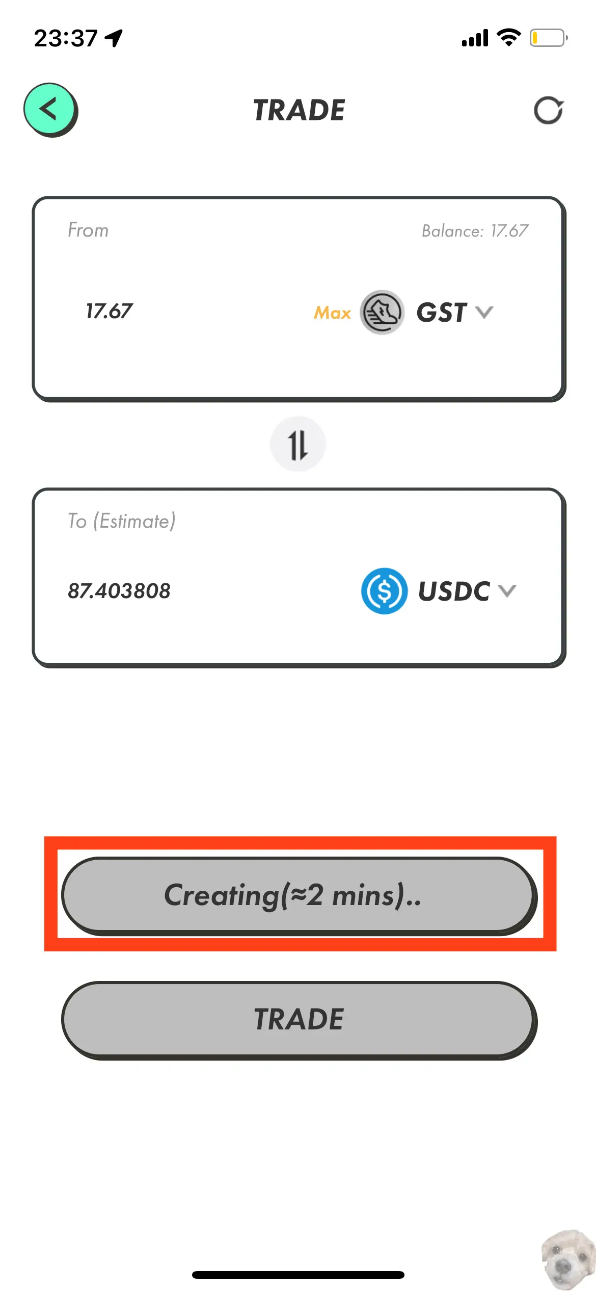 위의 좌측 사진처럼 <Asset>을 GST로 설정하고 Amount에서 스왑을 얼마나 할 건지 선택하도록 한다.