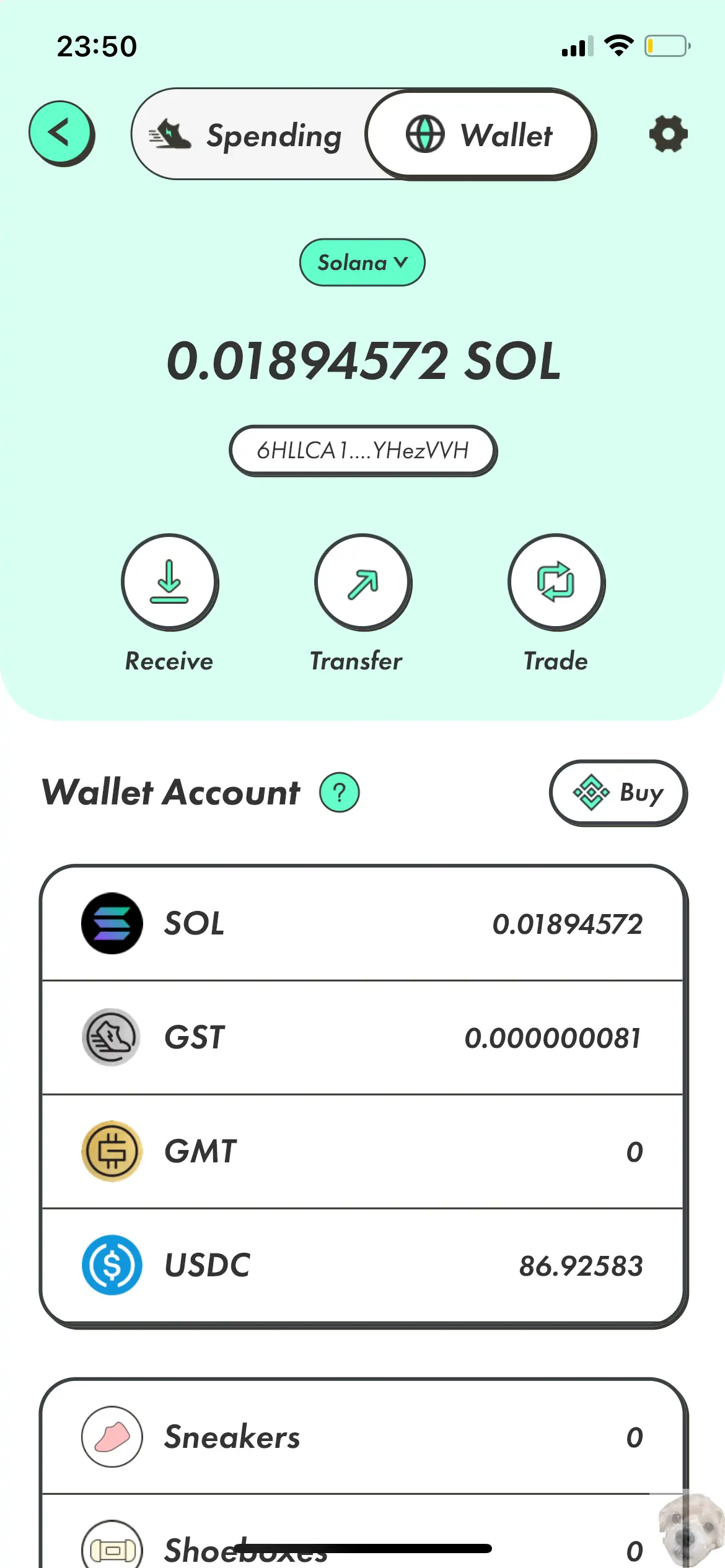 내가 매일매일 달려서 채굴한 GST는 '스펜딩'에 쌓인다. 하지만 USDC로 스왑을 하기 위해서는 스펜딩이 아닌 wallet에 GST를 옮기는 작업이 우선되어야 한다.