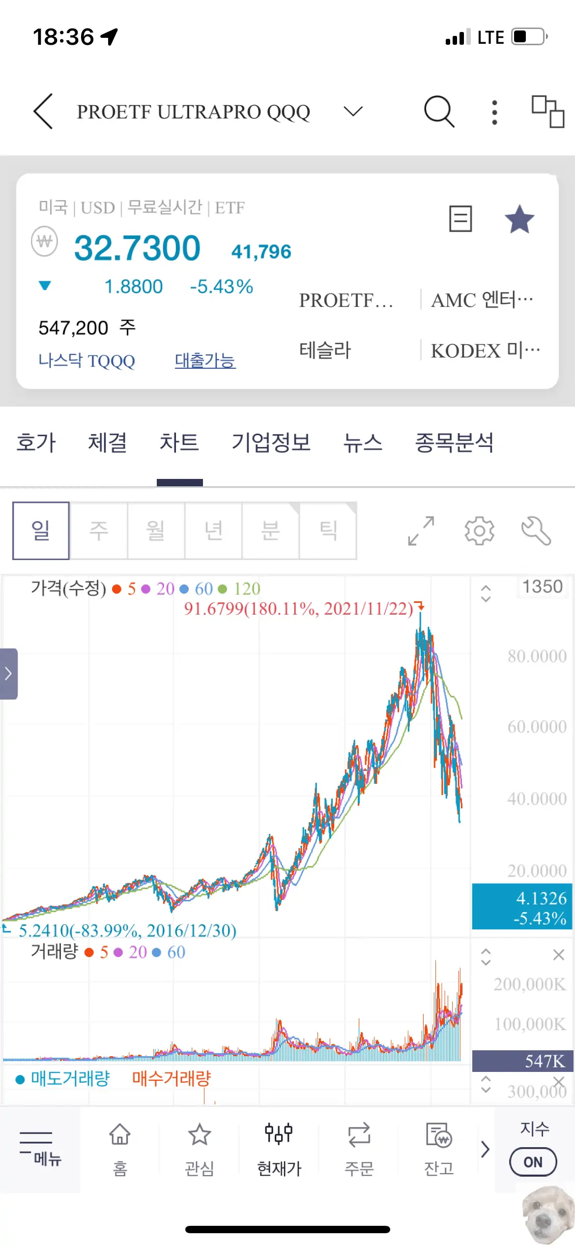 일단 TQQQ의 차트는 아찔한 수준이다. 아마 고점에서 매수한 사람들은 지금 자산이 이미 1/3토막 난 상태이기 때문에 멘털이 나갔을 거고 나는 그래도 다행히(?) 2배 레버리지 지수 추종 상품인 QLD를 매수해서 그나마 나은 편이지만 -50% 이상이다.