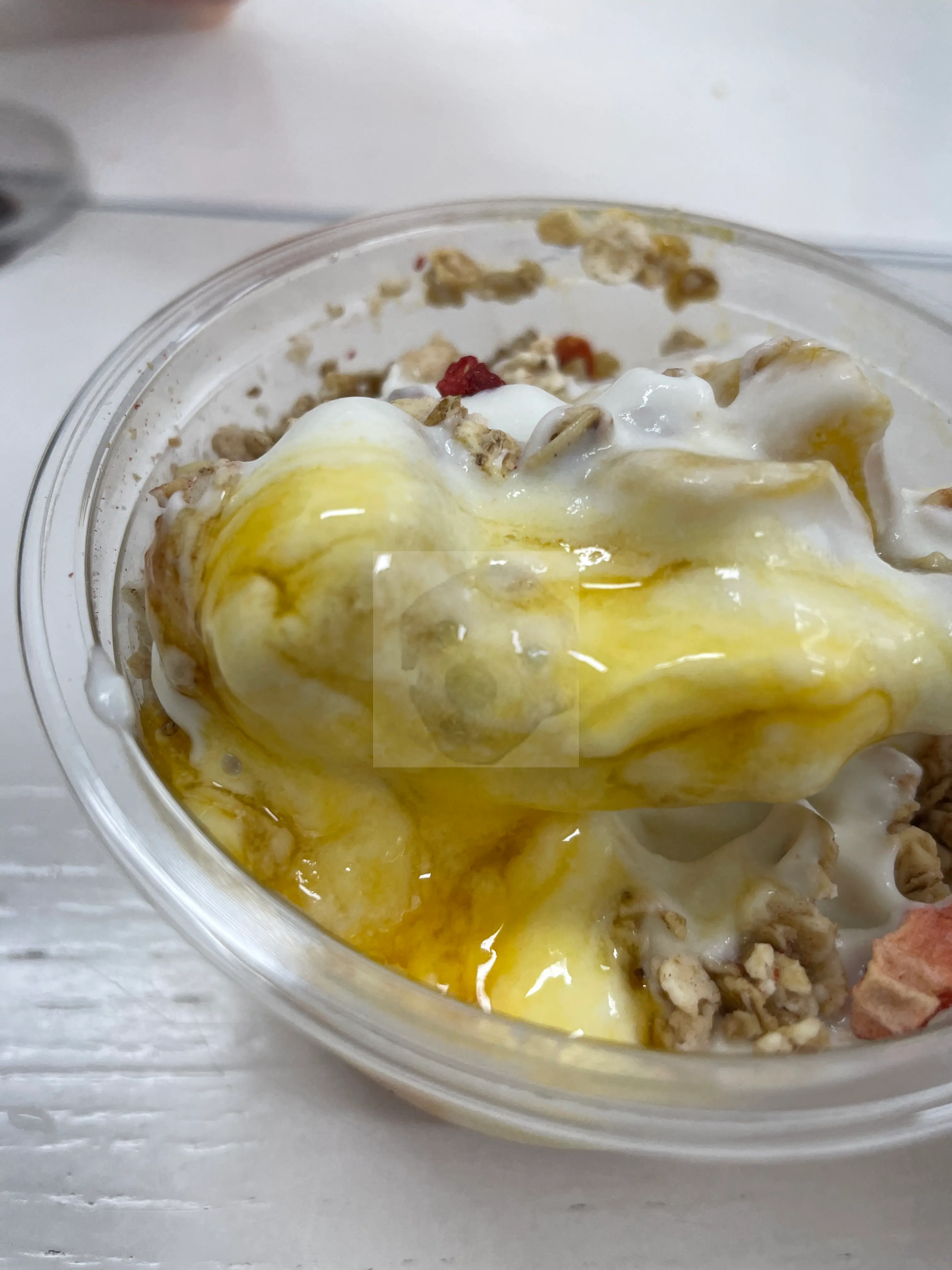동영상으로 실감 나게 직접 메뉴가 어떤지 볼 수 있도록 동영상을 촬영해봤다. 맨 아래쪽에는 망고 과육이 그리고 중간에는 그릭요거트가, 맨 위에는 그래놀라가 듬뿍 올라가 있어서 아마 먹으면서 '비싸다'는 생각이 쏙 들어갈 것이다.