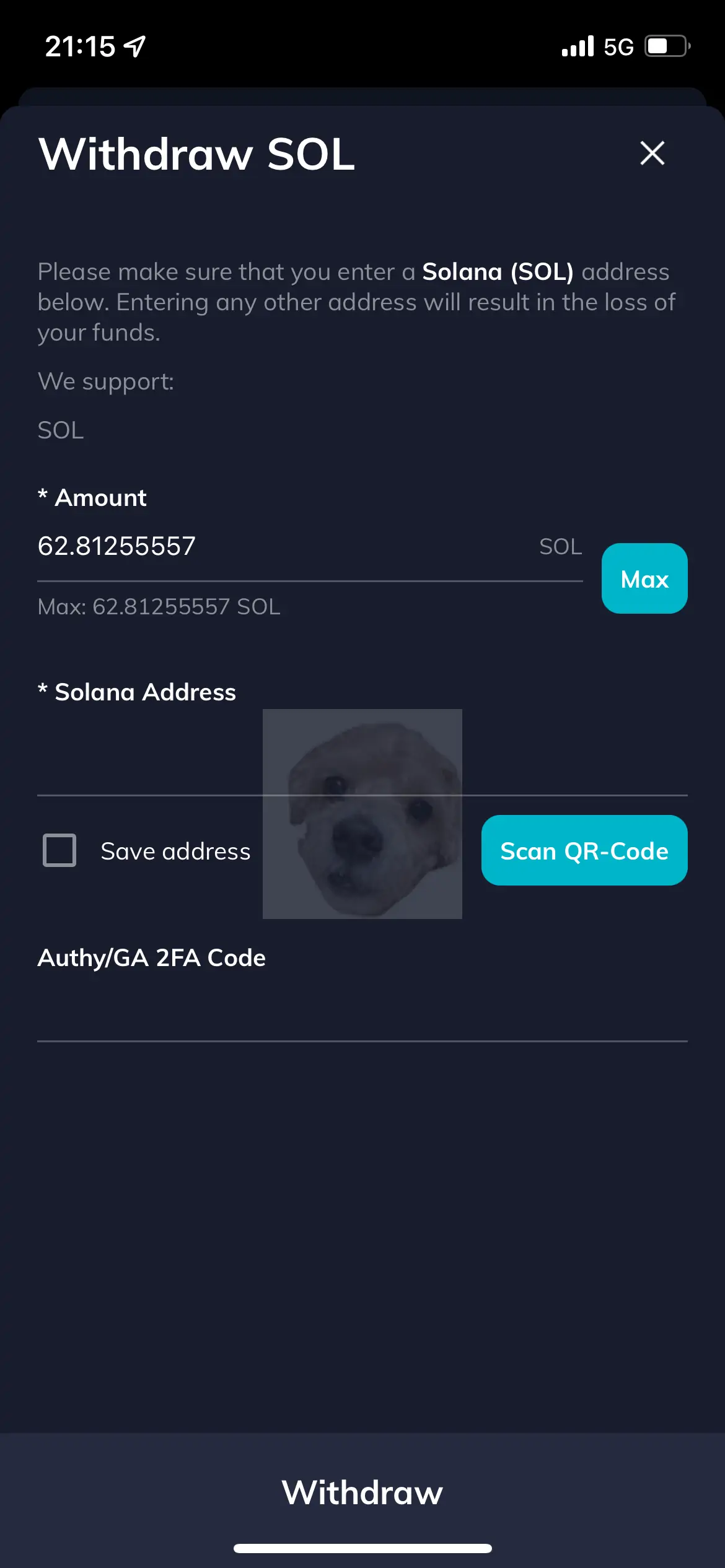 입금 주소를 입력하고 구글 2차 인증까지 모두 입력 후 [Withdraw] 실행하면 업비트로 전송이 시작된다. 처음에는 62 SOL을 한 번에 보낼까 하다가 결국 나눠서 전송하기로 했다.