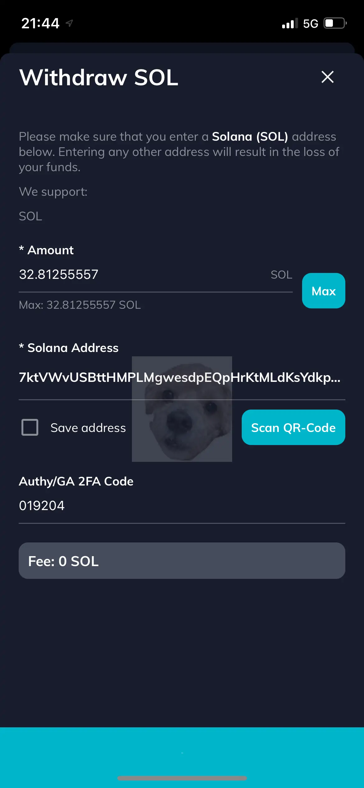 입금 주소를 입력하고 구글 2차 인증까지 모두 입력 후 [Withdraw] 실행하면 업비트로 전송이 시작된다. 처음에는 62 SOL을 한 번에 보낼까 하다가 결국 나눠서 전송하기로 했다.