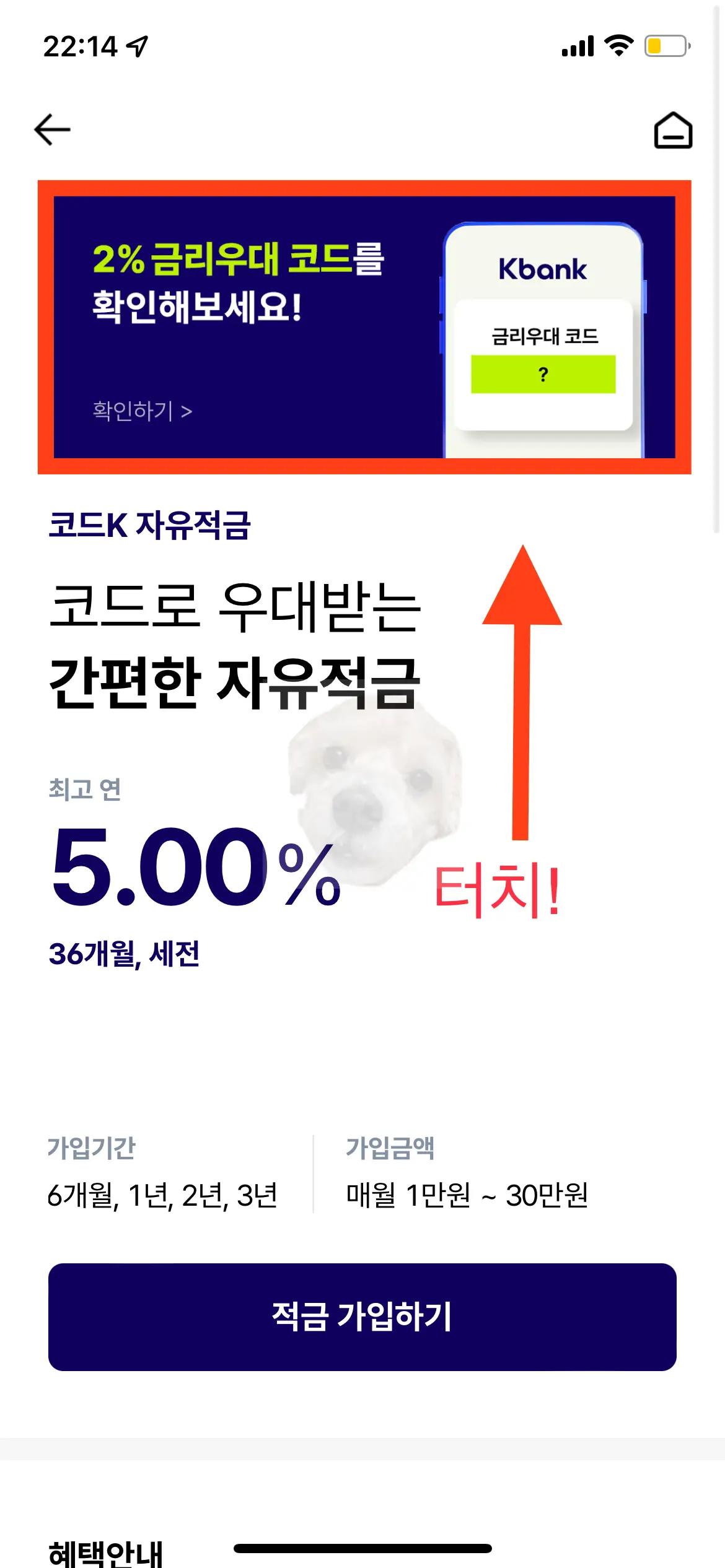고금리 적금 코드 K 자유적금 가입 순서