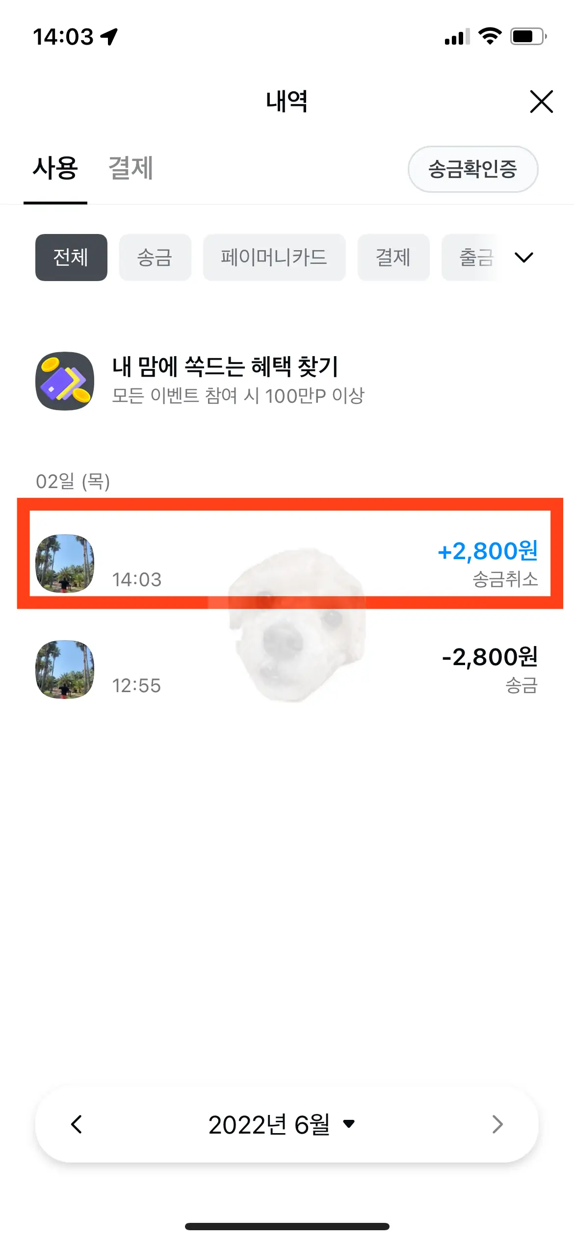 위처럼 취소가 정상적으로 이루어진 내역까지 확인했다면 모든 카카오페이 송금취소 절차는 끝났다고 볼 수 있다.