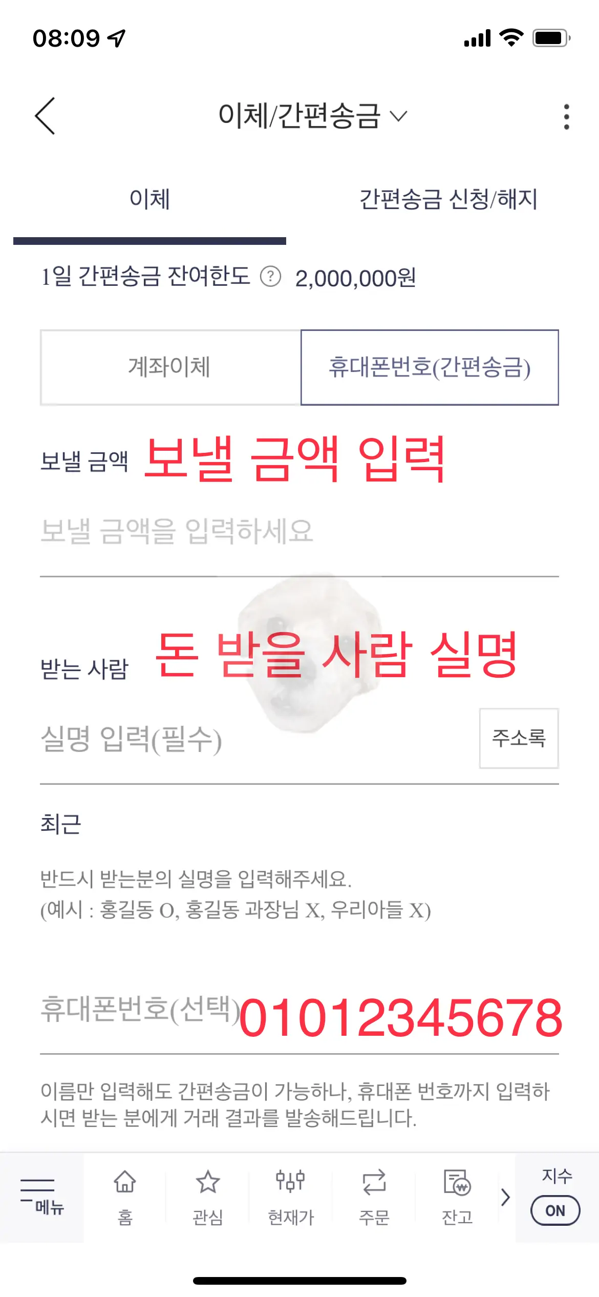 한국투자증권 수수료 없이 계좌이체 5초 만에 하는 방법