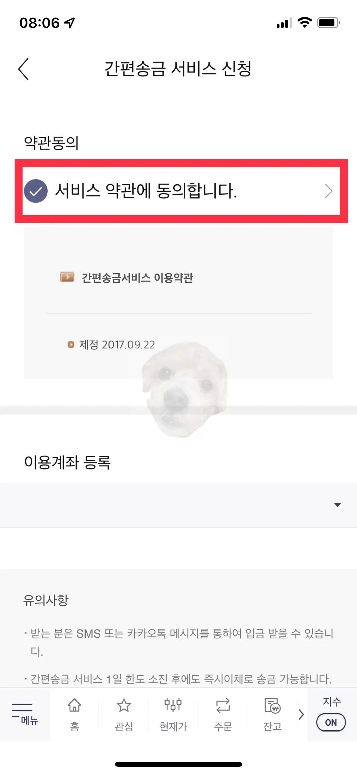 간편 송금 서비스 신청 시 주의사항