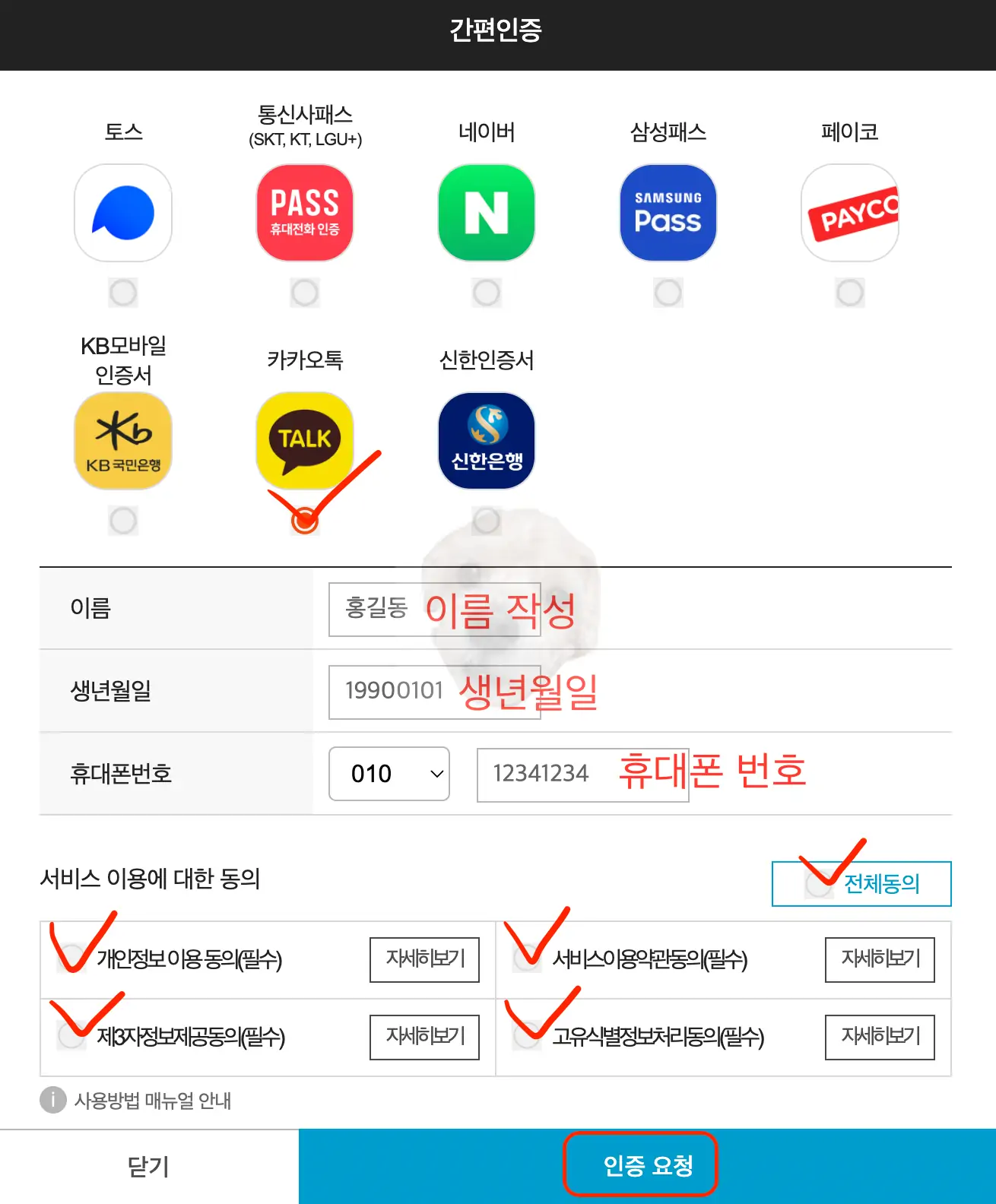 대부분 요즘 공동 인증서는 많이 사용하지 않는 추세이기 때문에 '카카오톡'을 이용해서 간편 인증을 하도록 하자.