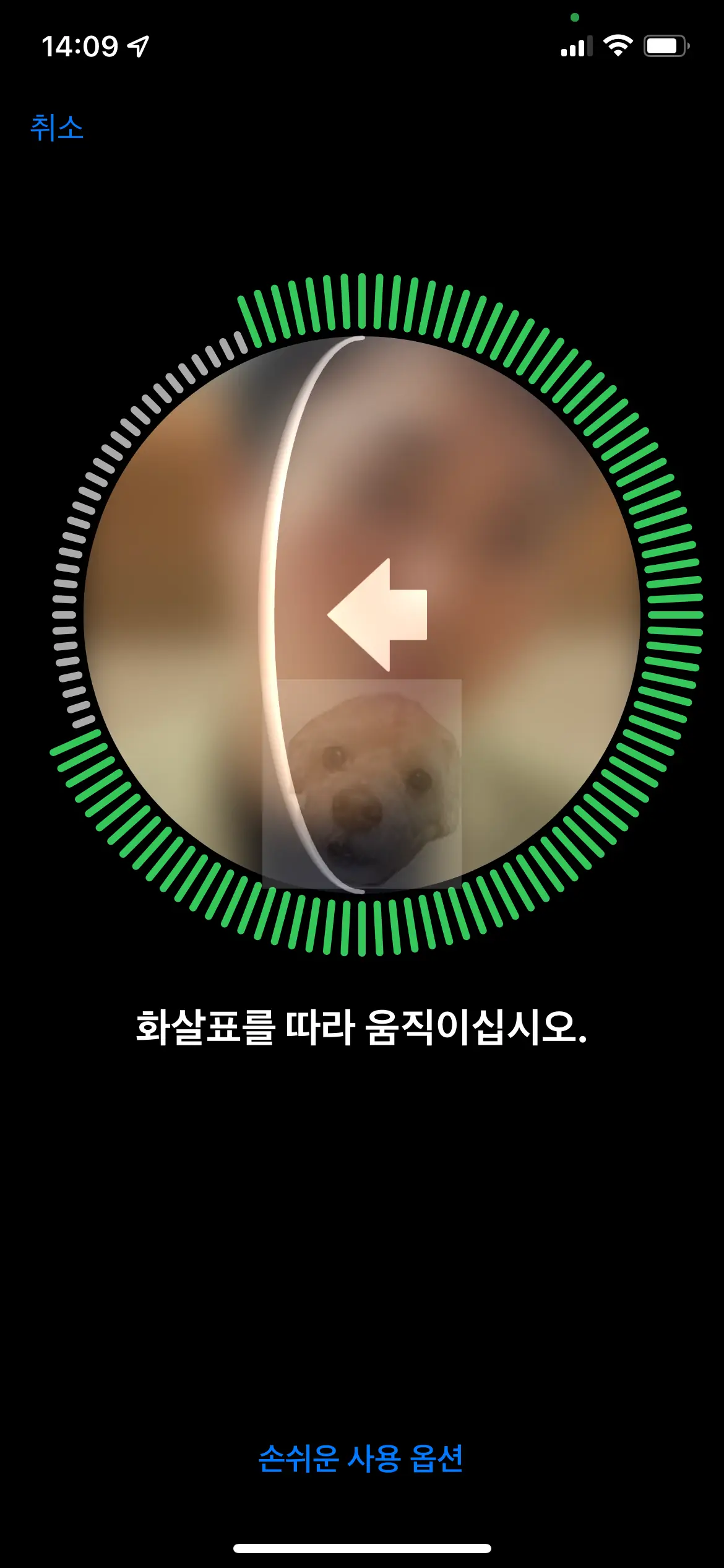 페이스 아이디 설정을 위해 얼굴 움직이기