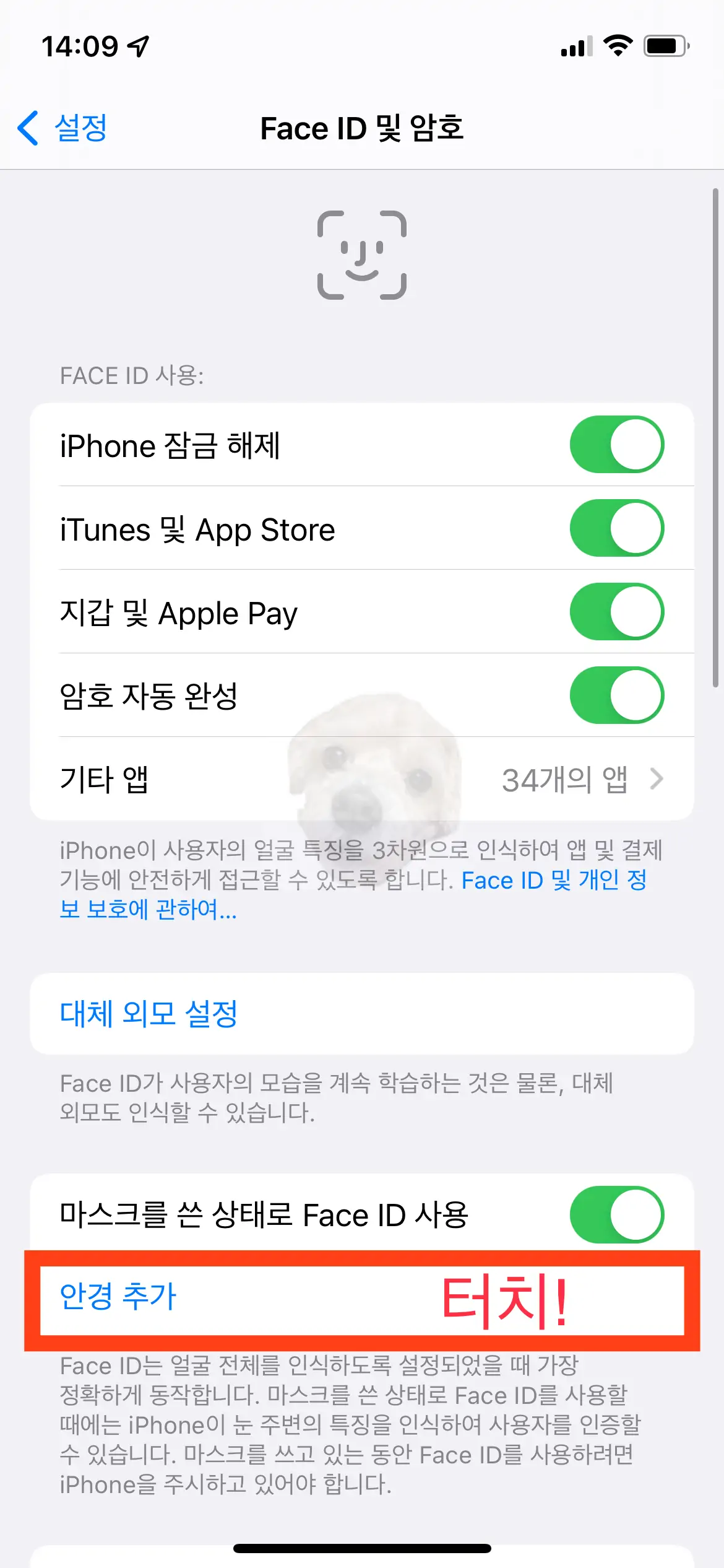 아이폰 페이스아이디 마스크/안경 쓰고 잠금해제 설정 방법