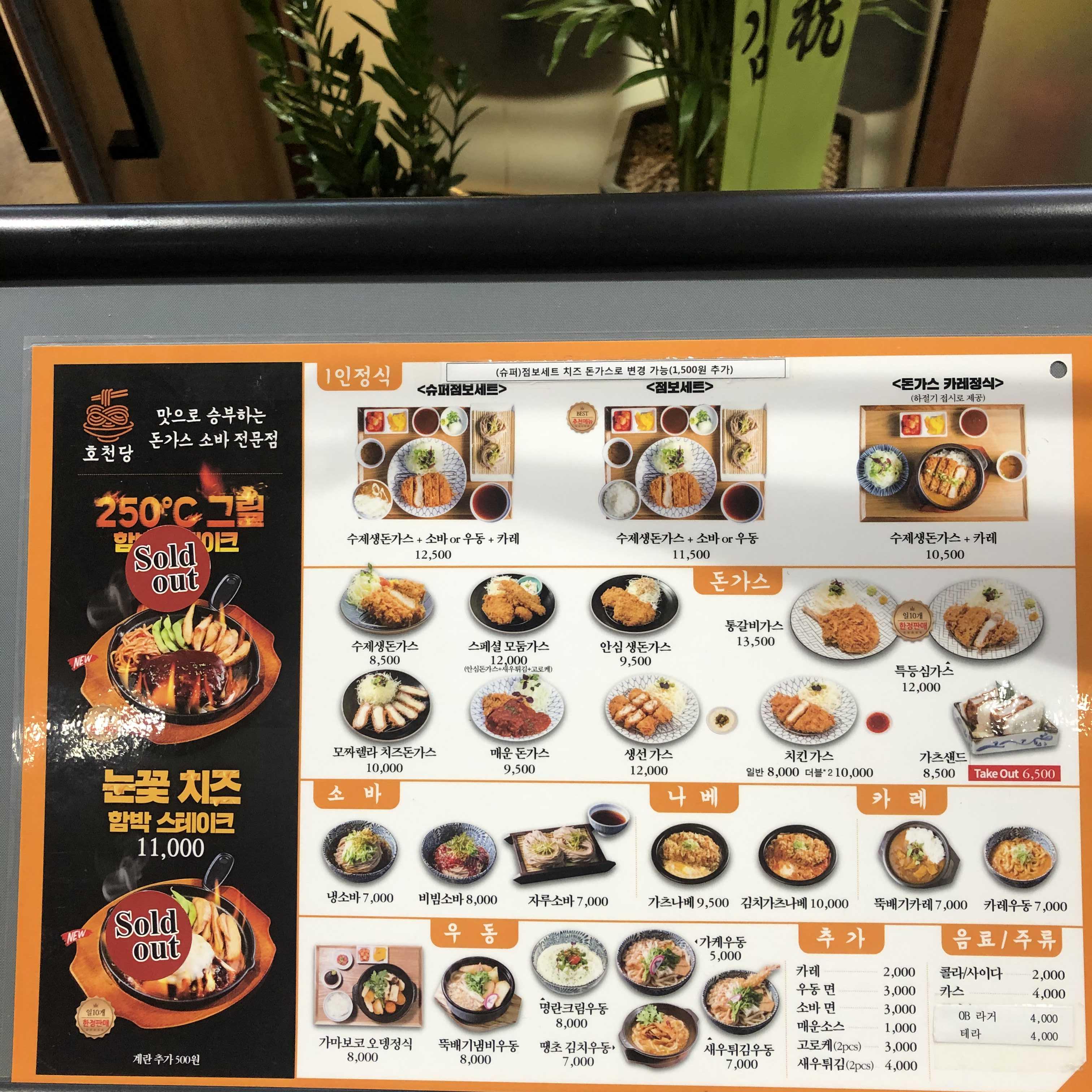 그래서 호천당 메뉴 그리고 가격을 공유하겠다.