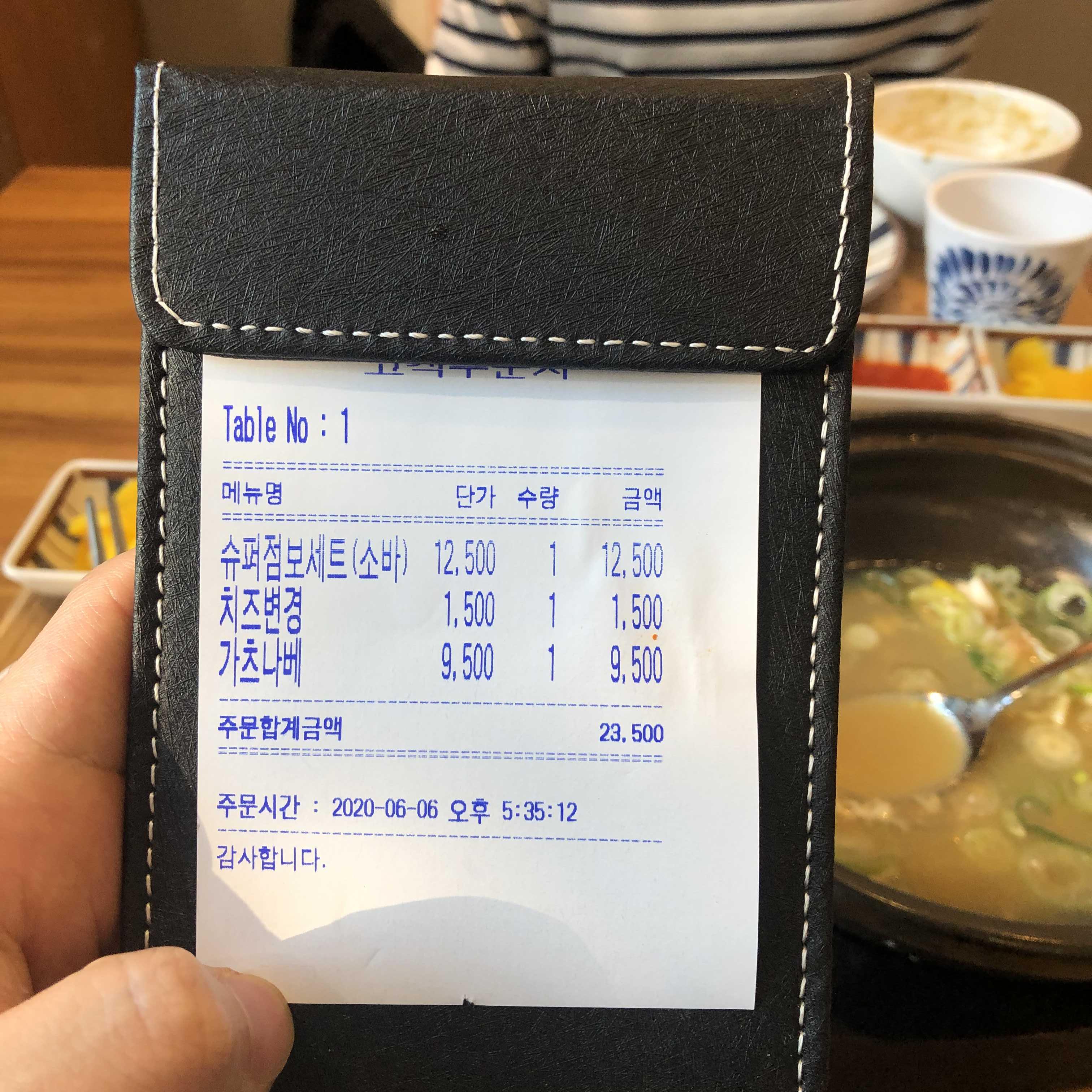 우리는 가츠나베와 슈퍼점보세트(치즈돈가스로 변경)을 주문했다.