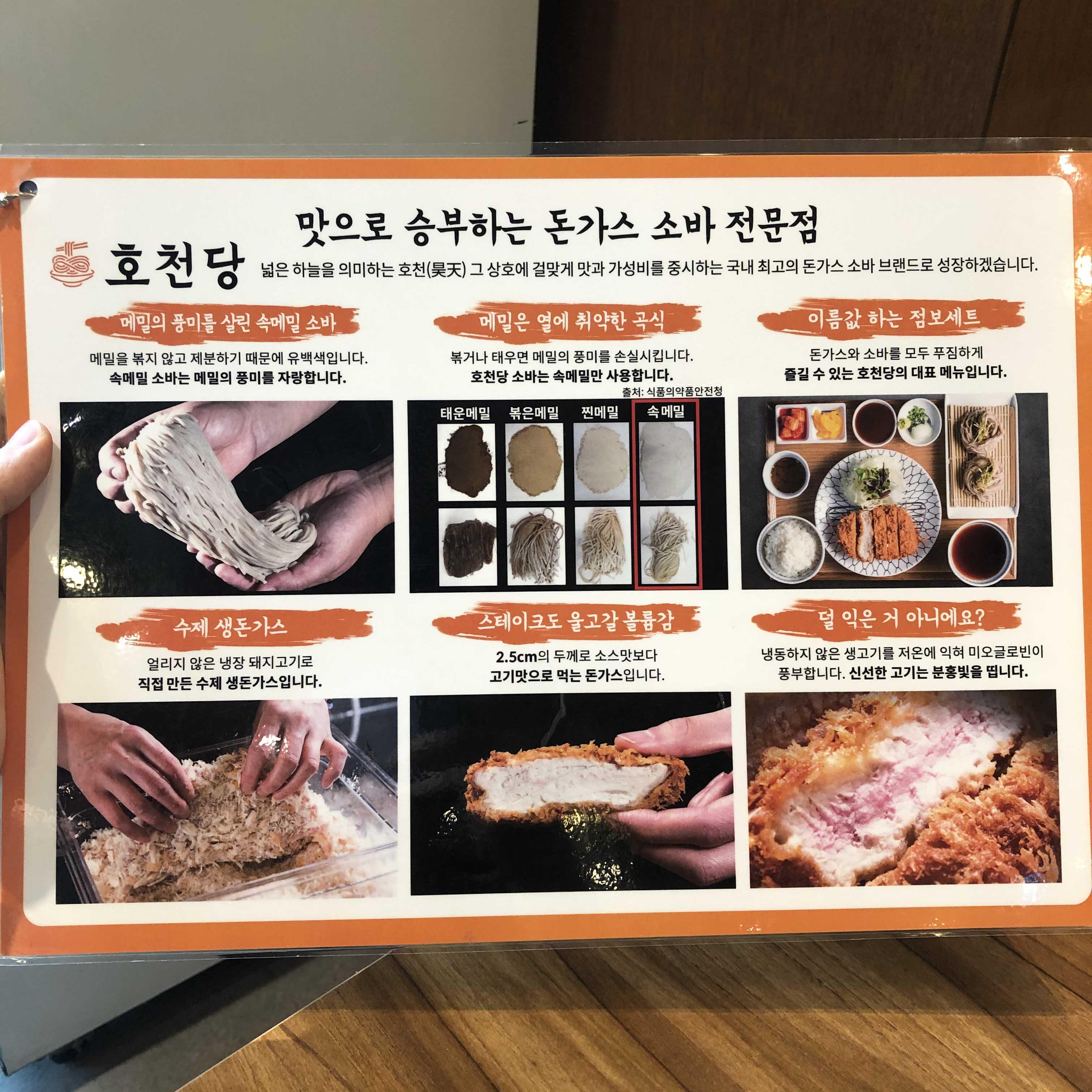 호천당의 소바와 돈가스에는 아래의 그림처럼 여섯가지의 특화된 점이 있다.