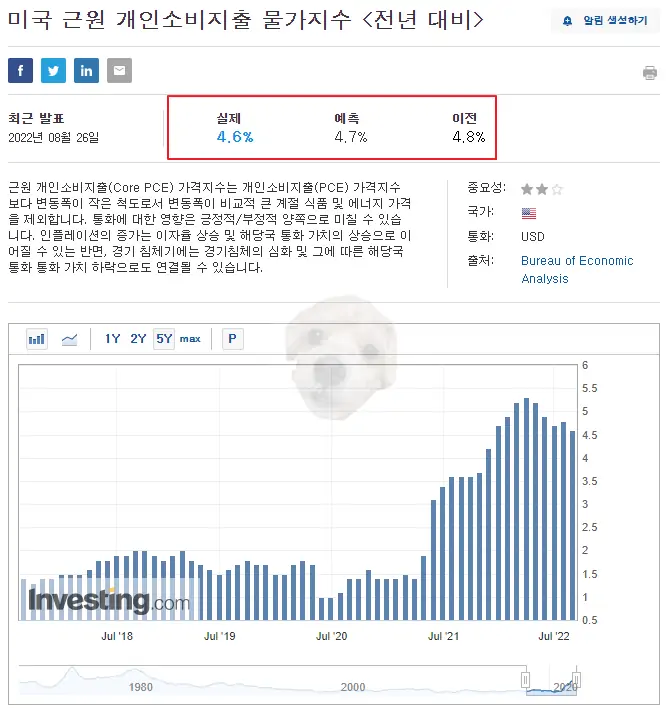 물가가 얼마나 올랐는지를 바로 알 수 있는 지표이기 때문에 예측보다 높게 나오면 이 역시 '인플레이션'이 심화되고 있다는 것을 알 수 있는 수치 중 하나로 볼 수 있다.