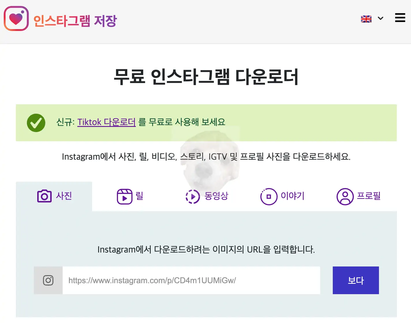 마지막으로 공개하는 사이트는 세이브 인스타그램으로 숏폼 동영상인 릴스 및 IGTV라고 불리는 비디오 동영상까지 한 번에 모두 해결이 가능한 사이트다.