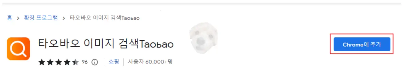 크롬 웹스토어에 진입해서 '타오바오'라고 검색하면 아래 사진과 같은 프로그램이 검색되는데, 해당 프로그램을 크롬에 바로 설치해주면 된다.