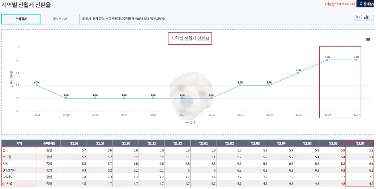 위 사진처럼 지역별 전월세 전환율을 확인해보더라도 5.9%가 전국 평균으로 나오니, 부동산 시장에서 전월세 전환율의 흐름을 보고 싶다면 아래 사이트를 이용해 보는 것도 추천한다.