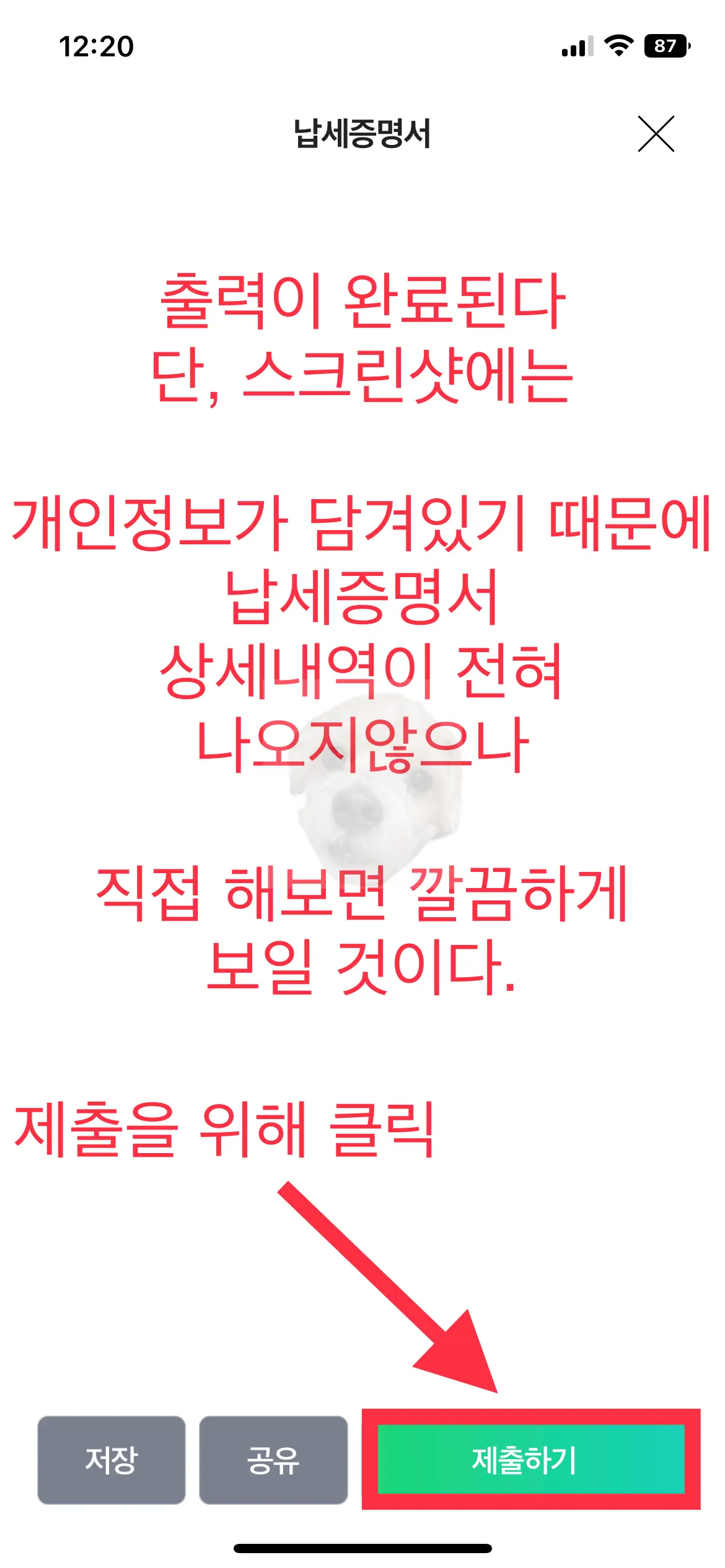 납세 증명서 발급 완료 확인