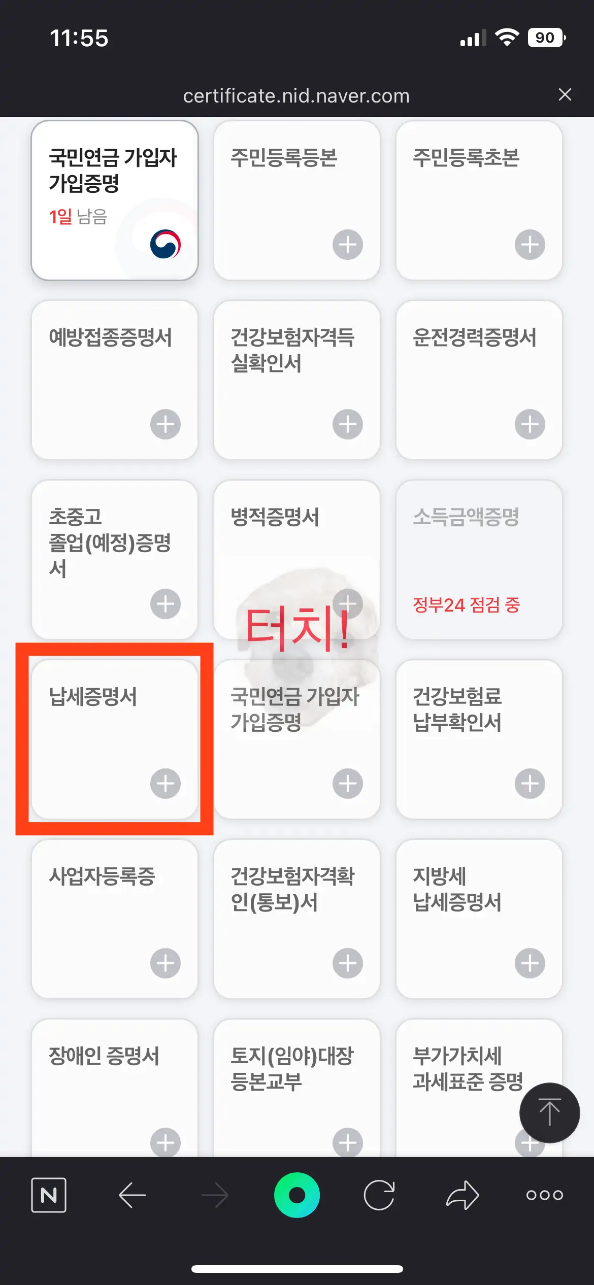 국세 완납증명서 모바일 네이버 앱 발급방법