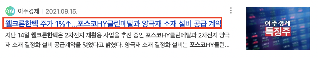 하지만 조금만 살펴보면 아래의 뉴스 기사에서 보는 것처럼 포스코에 수산화리튬 설비를 공급했기 때문이며, 삼성 SDI와도 칠레 리튬 프로젝트에 참여하면서 리튬 관련주로 묶일 수밖에 없는 사업을 많이 해왔다.