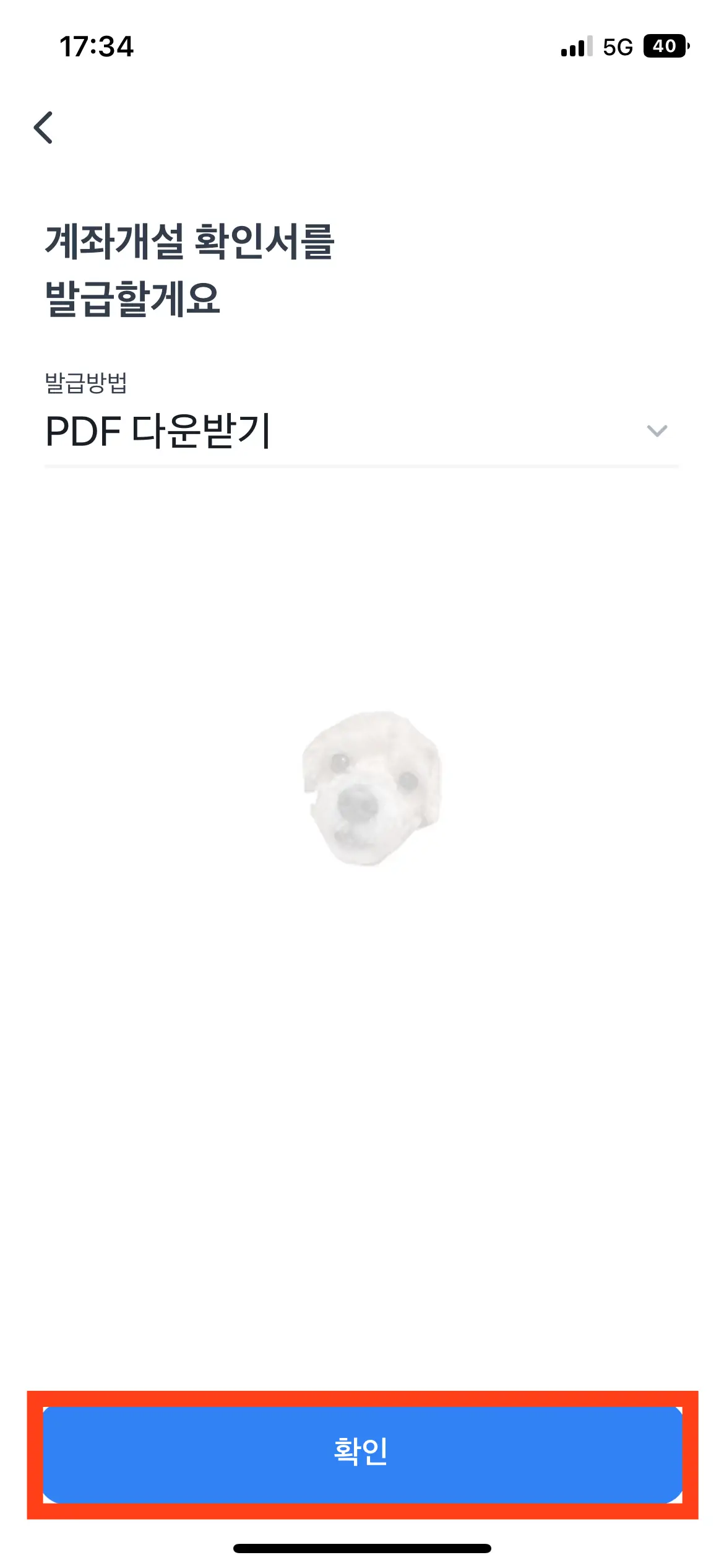 계좌 개설 확인서(통장사본) 발급이 본인이 원하는 방법으로 선택되었는지 확인하고 [확인] 버튼을 눌러주자.