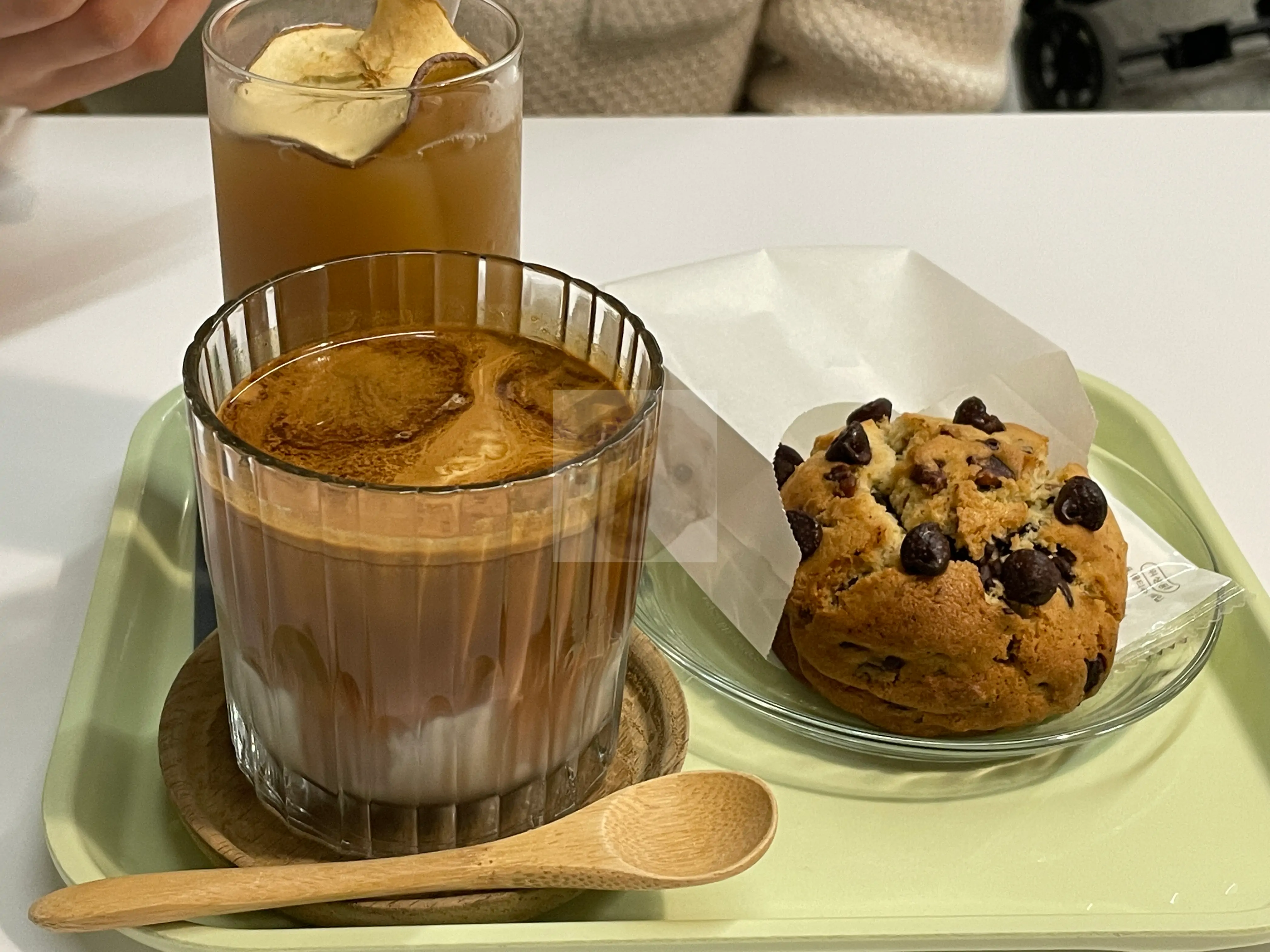 스콘도 굉장히 크고, 바삭하게 부서지는 스콘이라기보다는 조금 촉촉한 편이었으며 초콜릿이 엄청나게 많이 들어가서 아메리카노와 먹으면 자동으로 아메리카노 리필을 부르는 맛이었다.