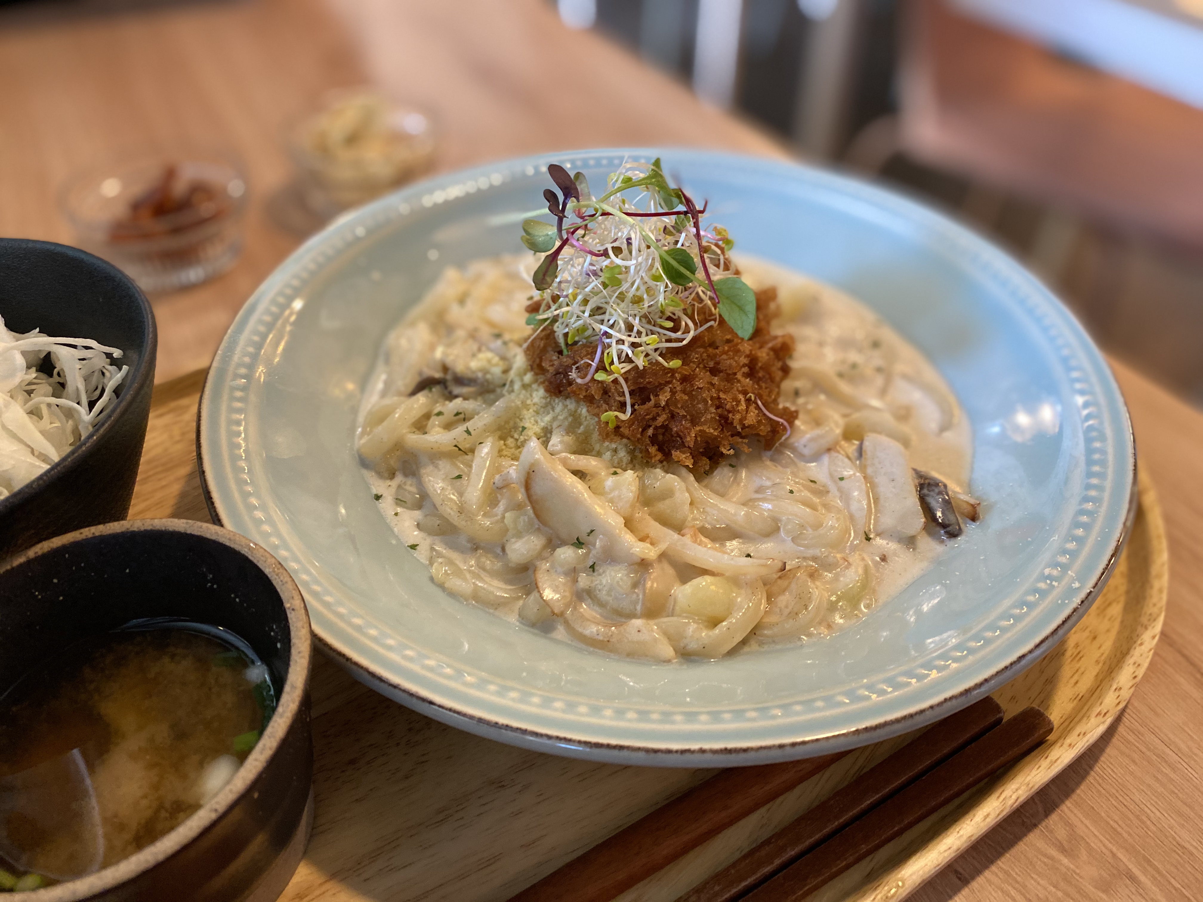 퓨전메뉴로 주문한 감자크림우동카츠.